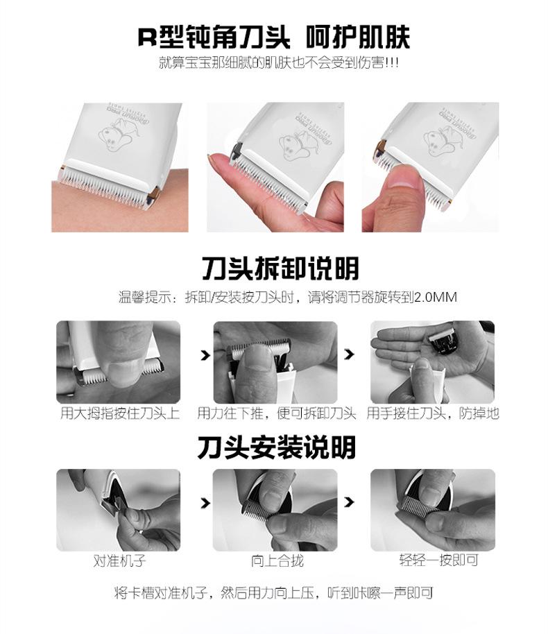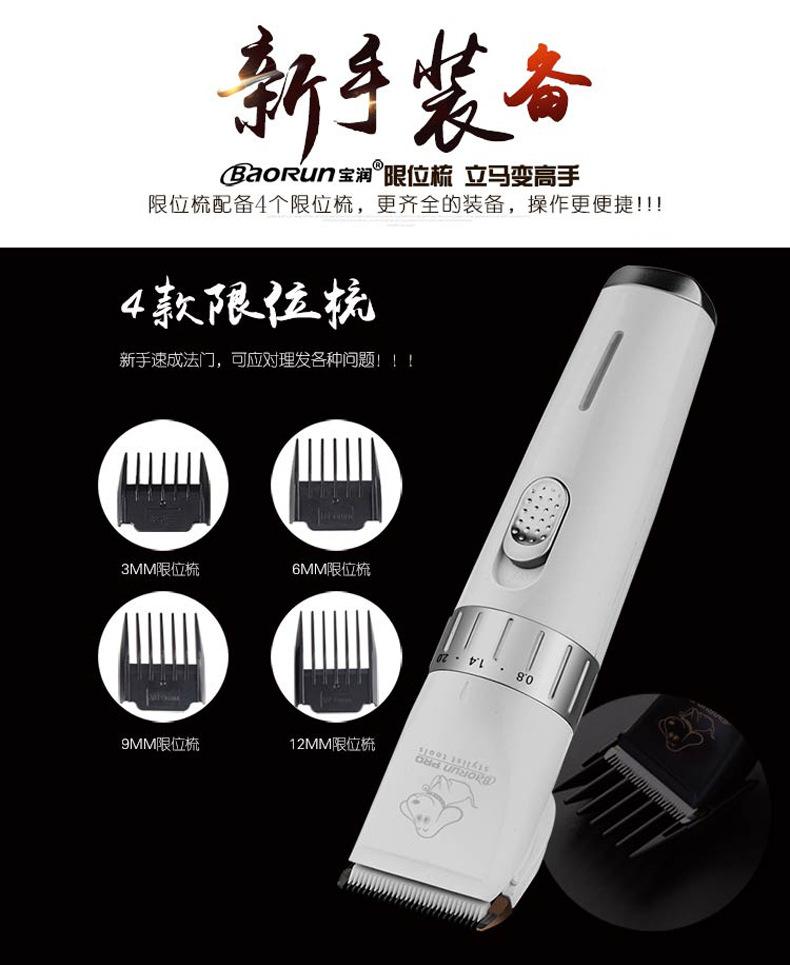 Accesorios del producto: caja de embalaje, manual de instrucciones, cuatro peines guía, un cargador, una botella de aceite lubricante, un cepillo de limpieza