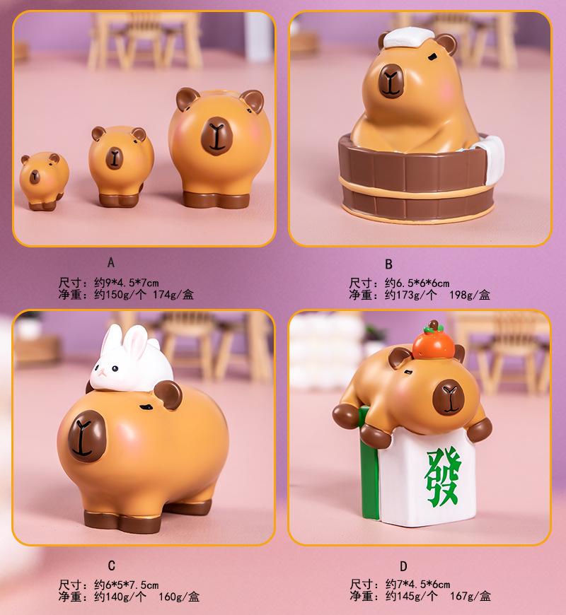 Capibala A stacked dolphin, Caphibala B Bath Dolphin, Capibala C- back rabbit dolphin, Caphibala D-haired pers...