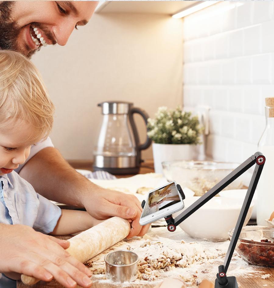 Soporte Universal de Metal de Escritorio de Doble Brazo para Teléfono y Tableta, Giratorio, Plegable con Clip, Venta Caliente Transfronteriza Suministro Directo
