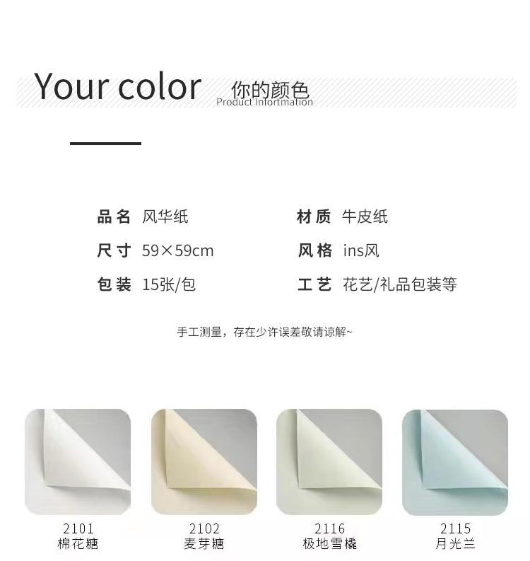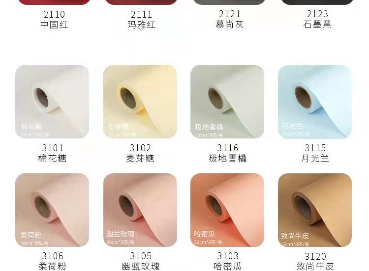 Rollo de papel engrosado de color sólido de la serie Xi Hua Nong Fenghua, papel kraft para envolver flores, material de embalaje para ramos florales