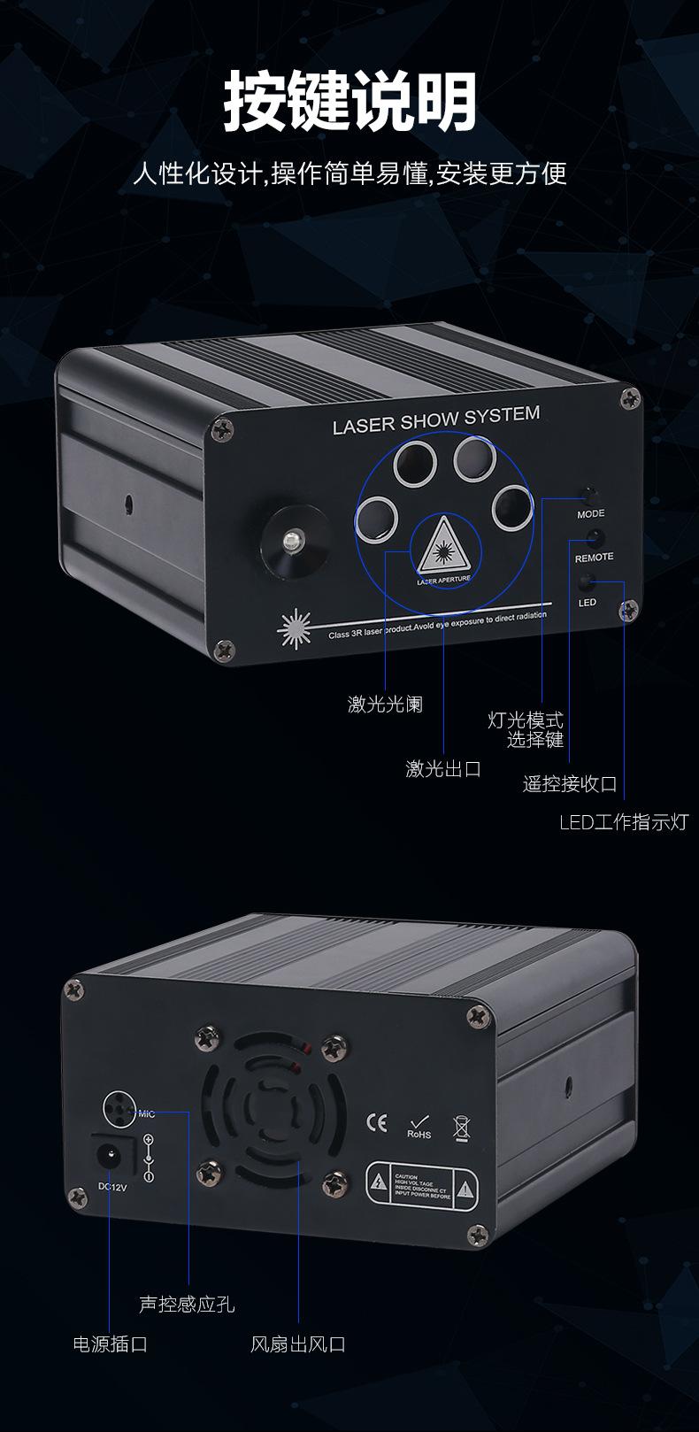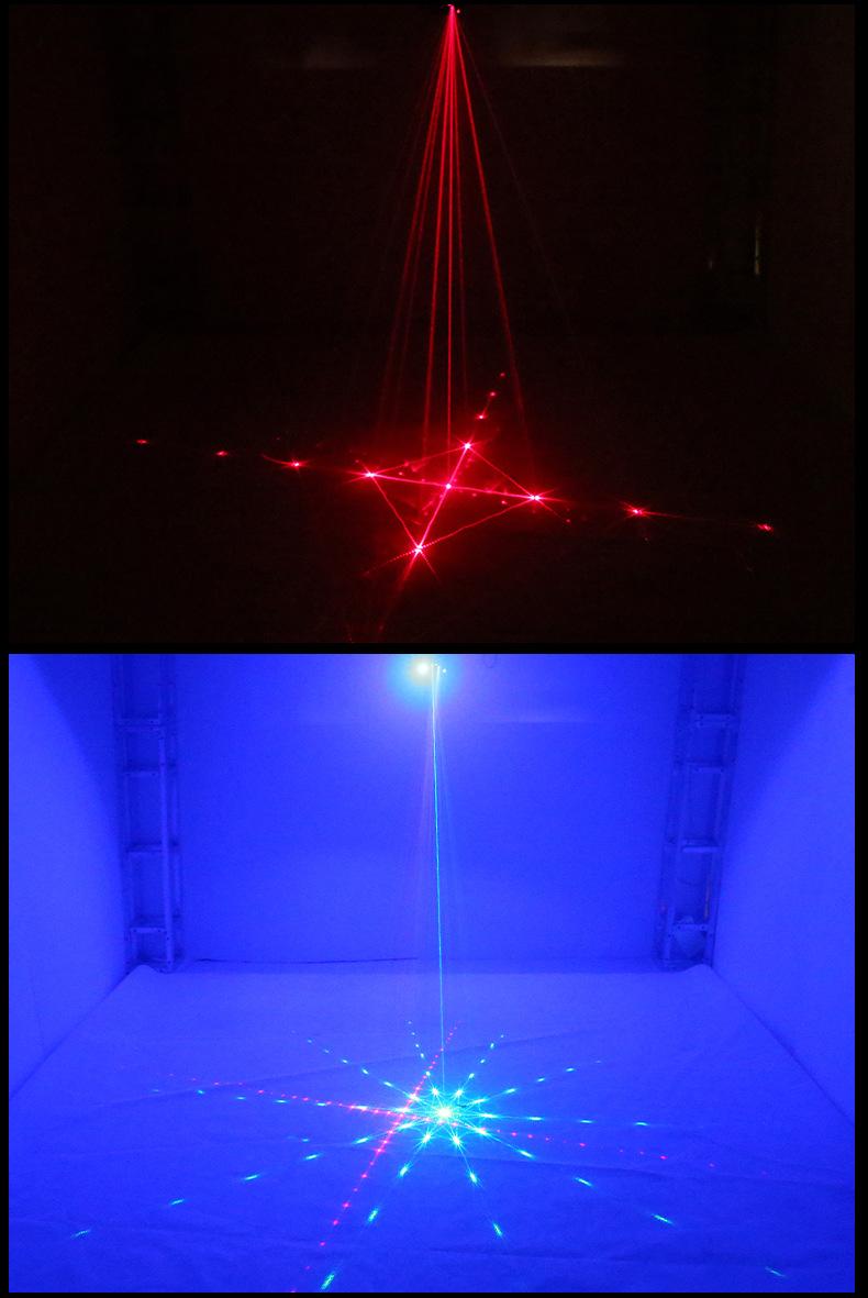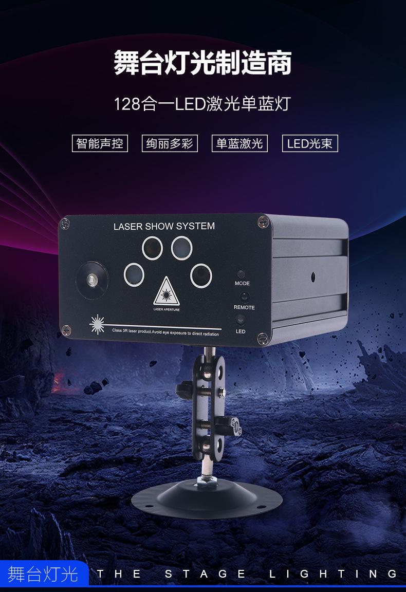 Ventas directas de fábrica 5 agujeros 128 en 1 LED patrón azul único luz láser roja y verde para hogar, sala de KTV, escenario