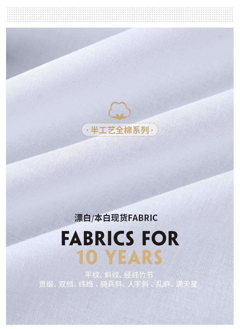 Tela de bolsillo de algodón, tela lisa, 20 x 20, 60 x 60, blanqueada, esta mancha blanca, ropa de mujer, camisa de niño, tela casual