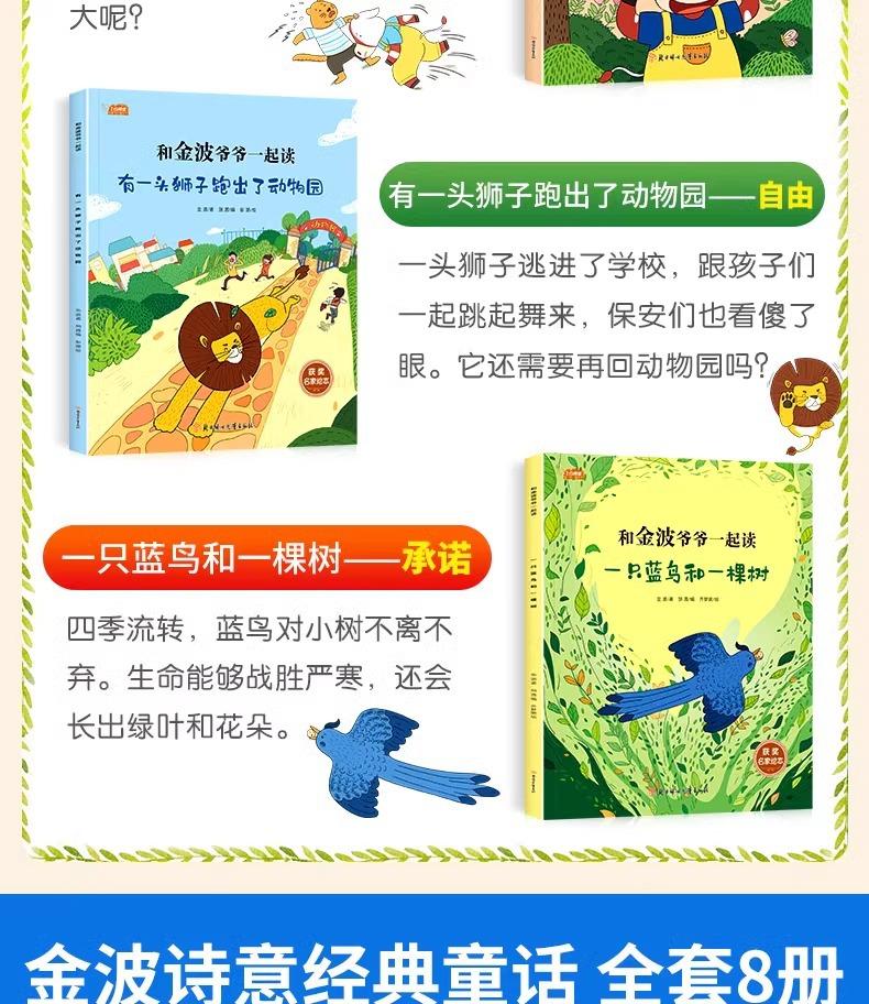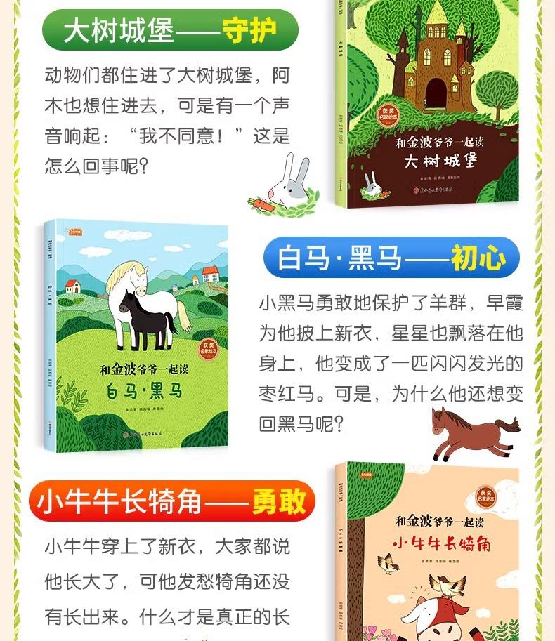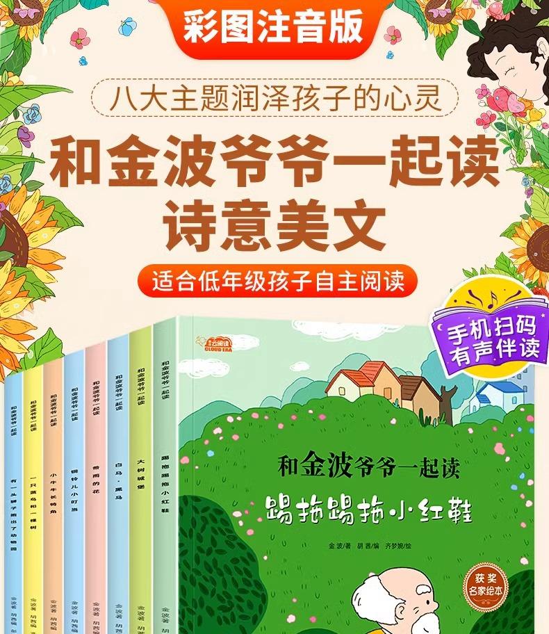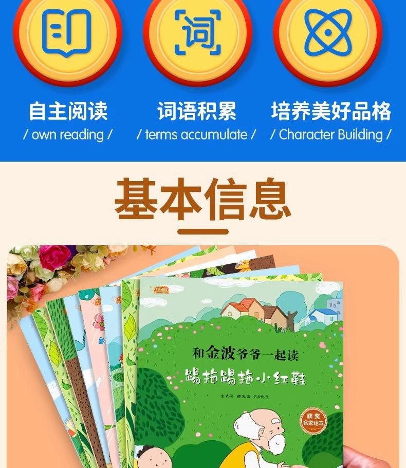Leí un conjunto completo de 8 libros con el abuelo Jinbo, leyendo libros extracurriculares, imágenes en color, versión audiovisual, libros ilustrados premiados.
