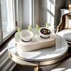 Tazón para Gato Tazón de Cerámica para Gato Tazón Doble Comedero para Gato Bebedero para Perro Tazón para Comida de Gato Tazón de Agua para Mascotas Tazón para Comida Antivuelco