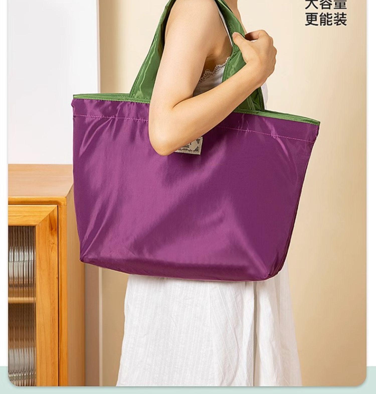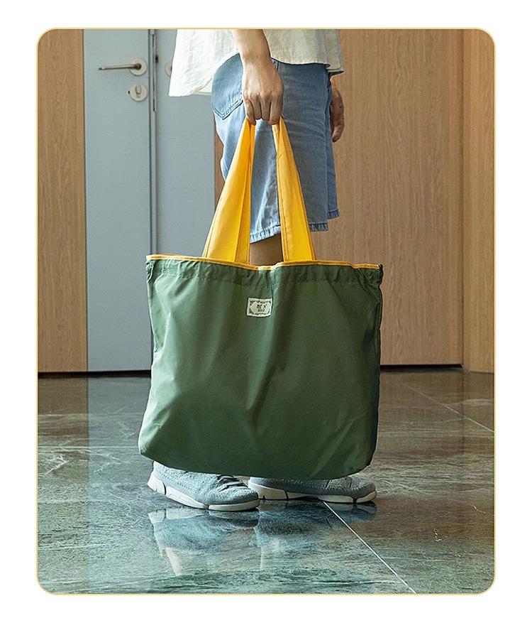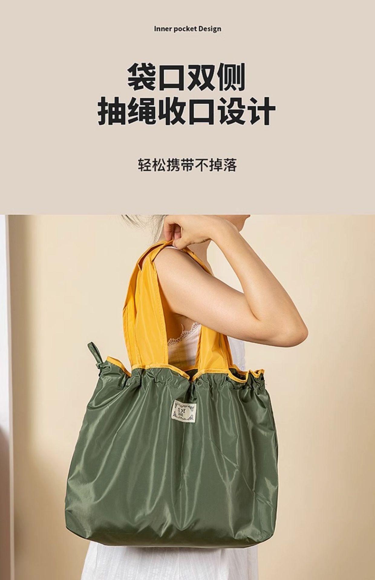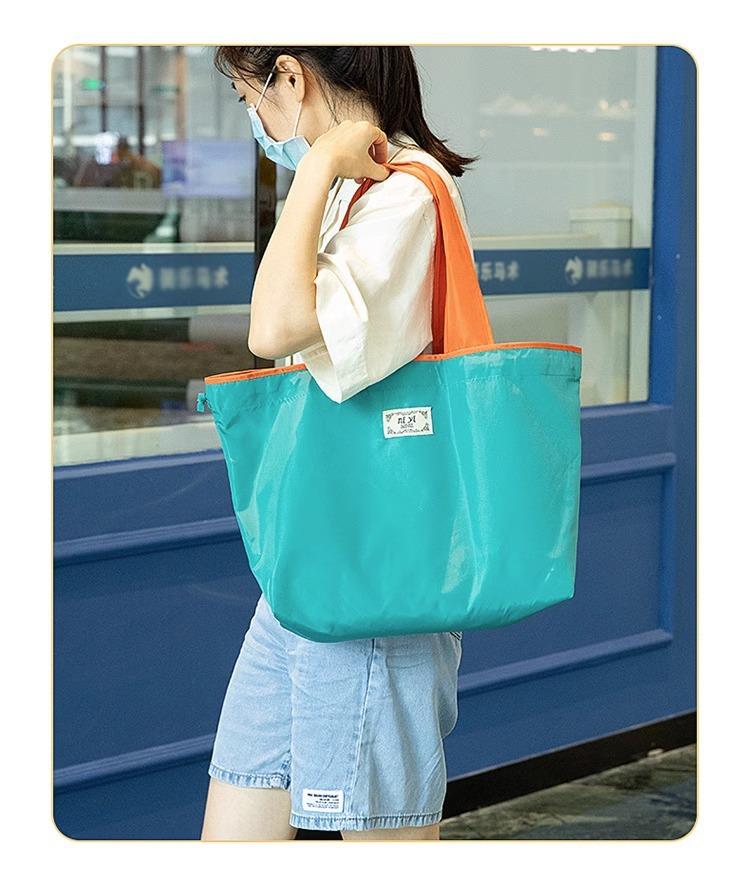Bolsa de compras plegable de color sólido, bolsa de almacenamiento impermeable, bolsa de compras de supermercado portátil, bolsa de mano de protección ambiental con cordón de gran capacidad