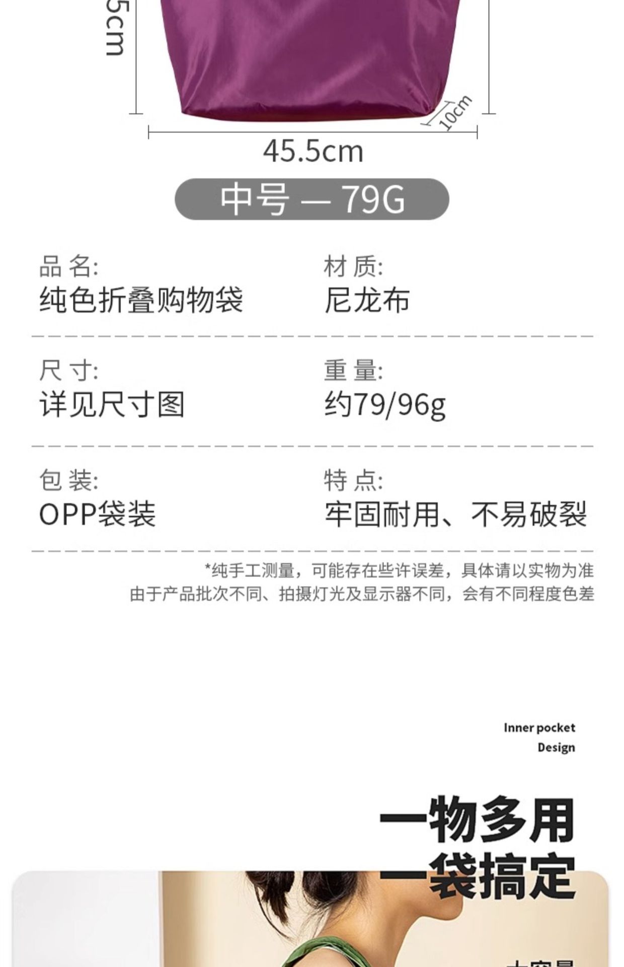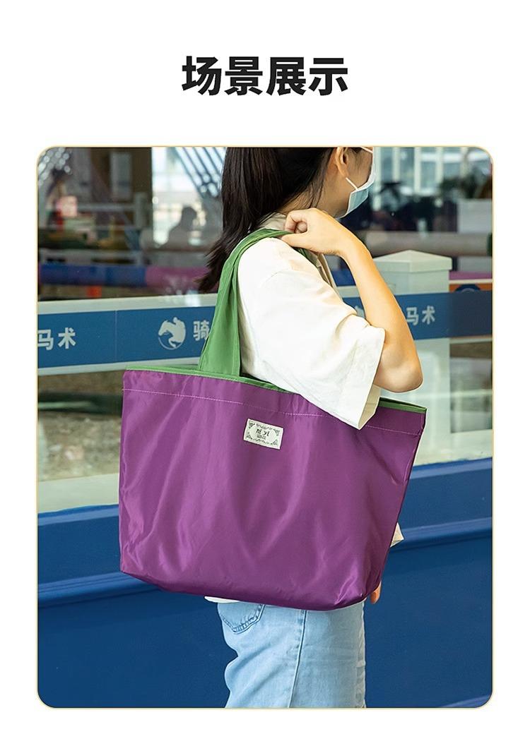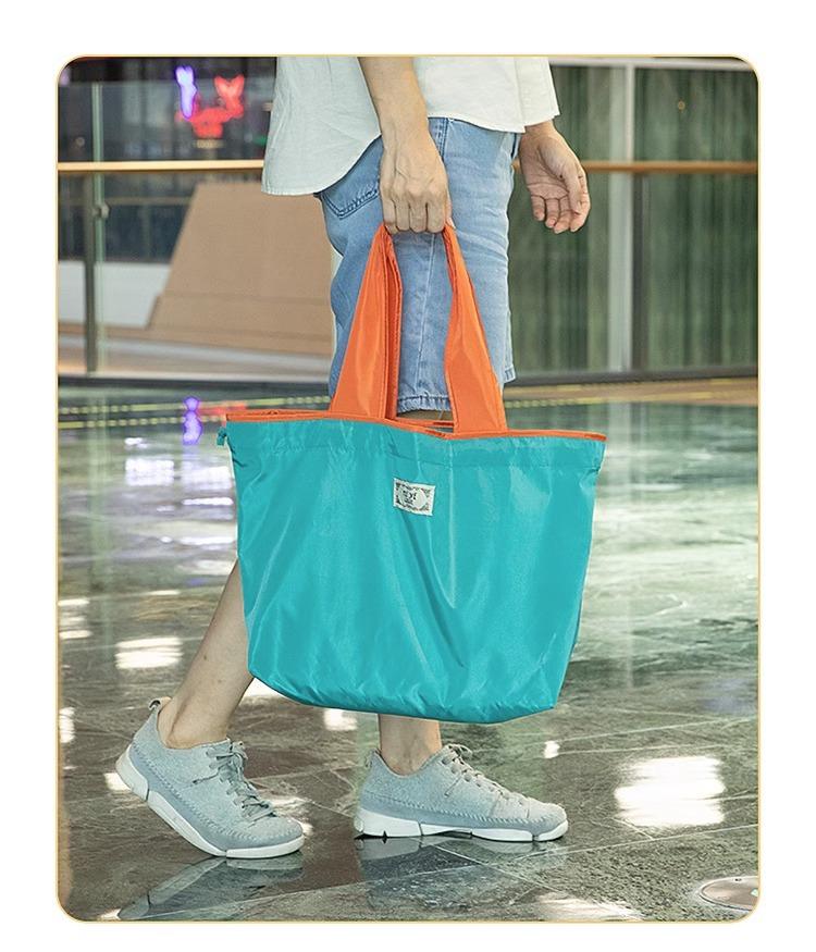 Bolsa de compras plegable de color sólido, bolsa de almacenamiento impermeable, bolsa de compras de supermercado portátil, bolsa de mano de protección ambiental con cordón de gran capacidad
