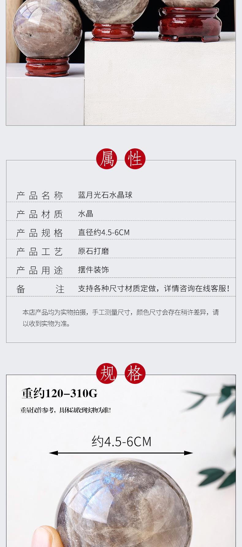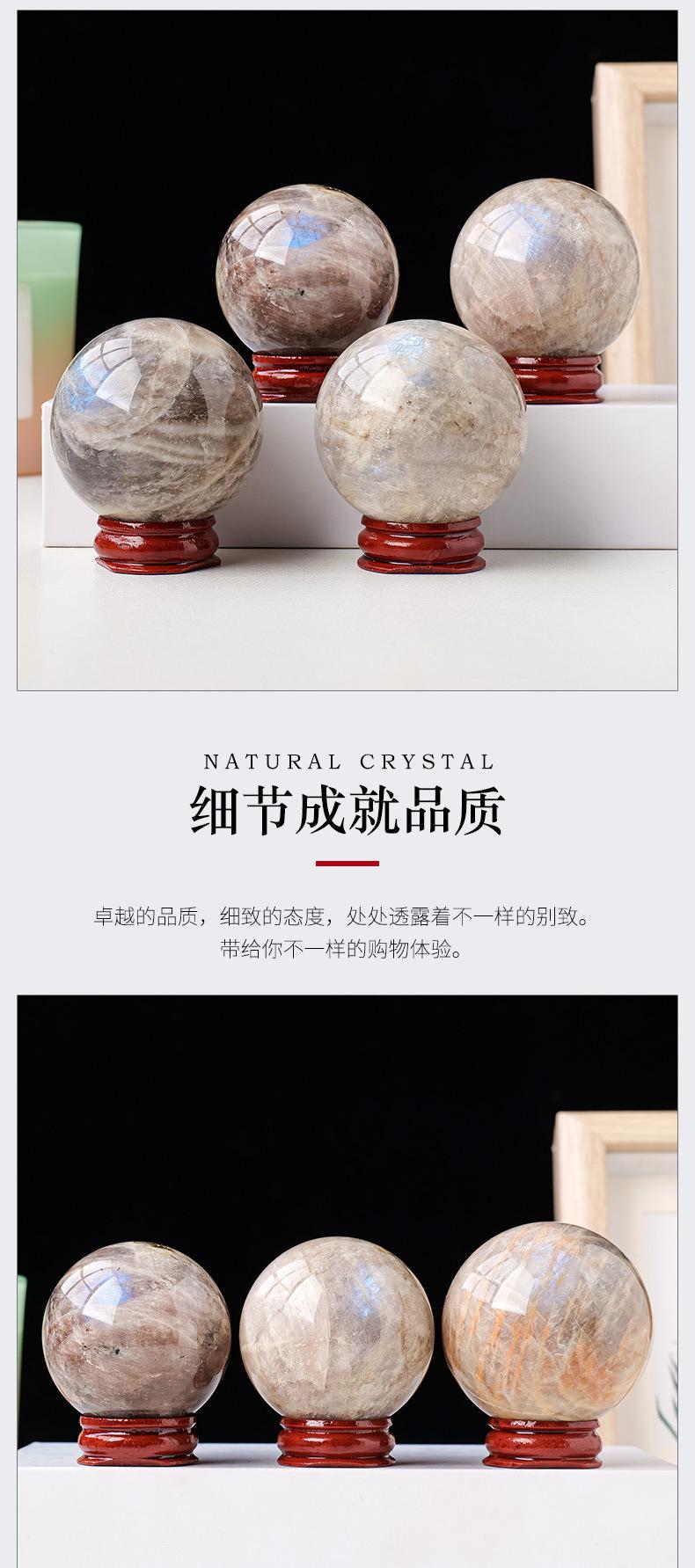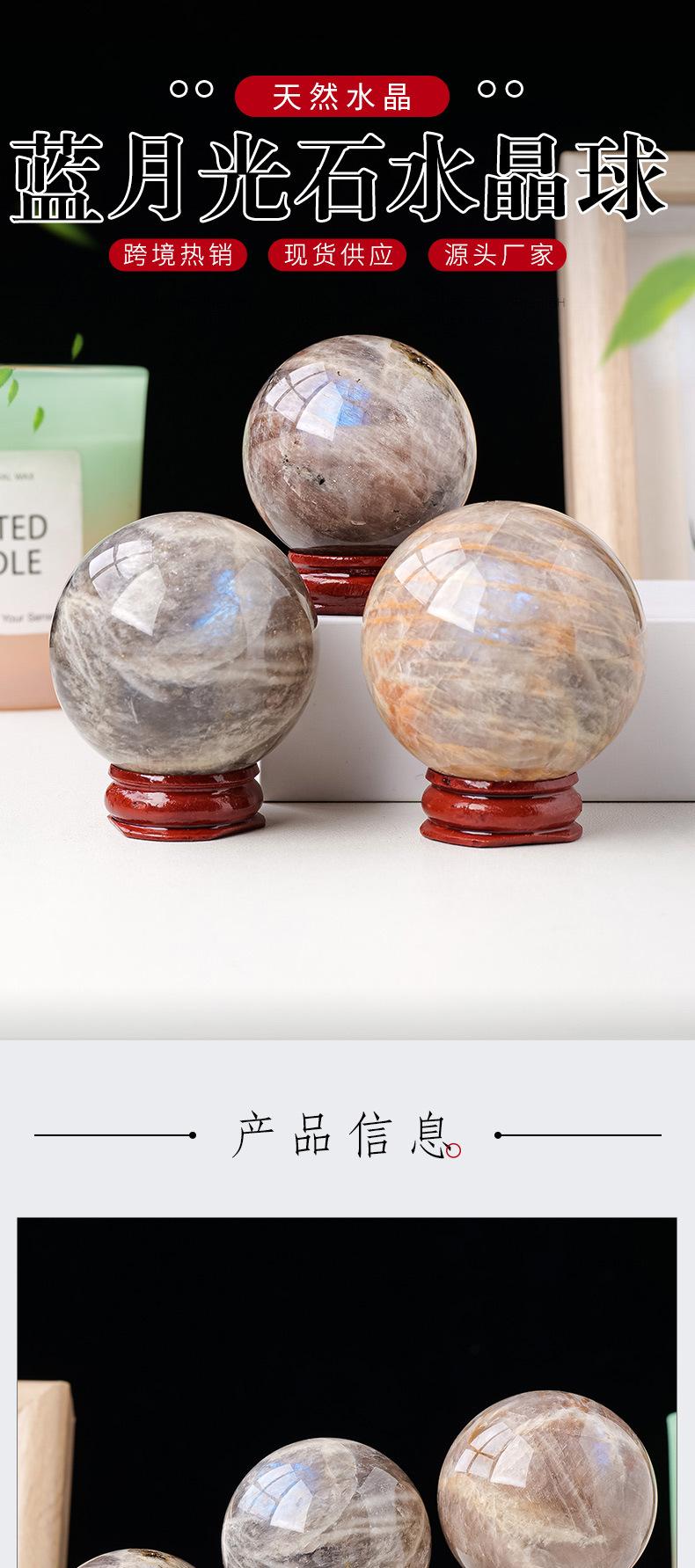 Bola de piedra de luna azul de cristal natural pulida a mano, piedra original, decoración de escritorio, paisaje, bola de feng shui, decoración de fábrica al por mayor