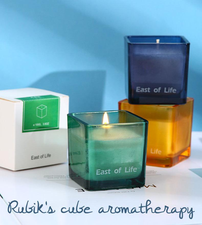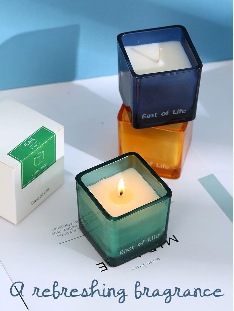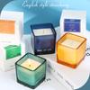 Vela de aromaterapia de vidrio cuadrada hecha a mano de cera de soja, decoración del hogar, fragancia, regalo de cumpleaños y boda, venta al por mayor