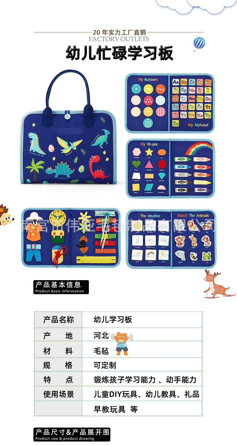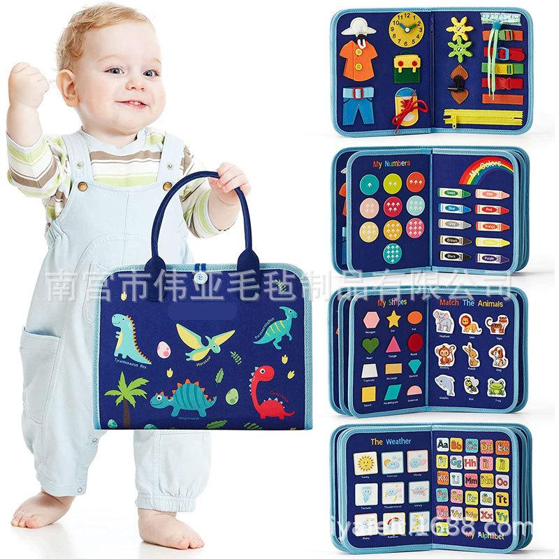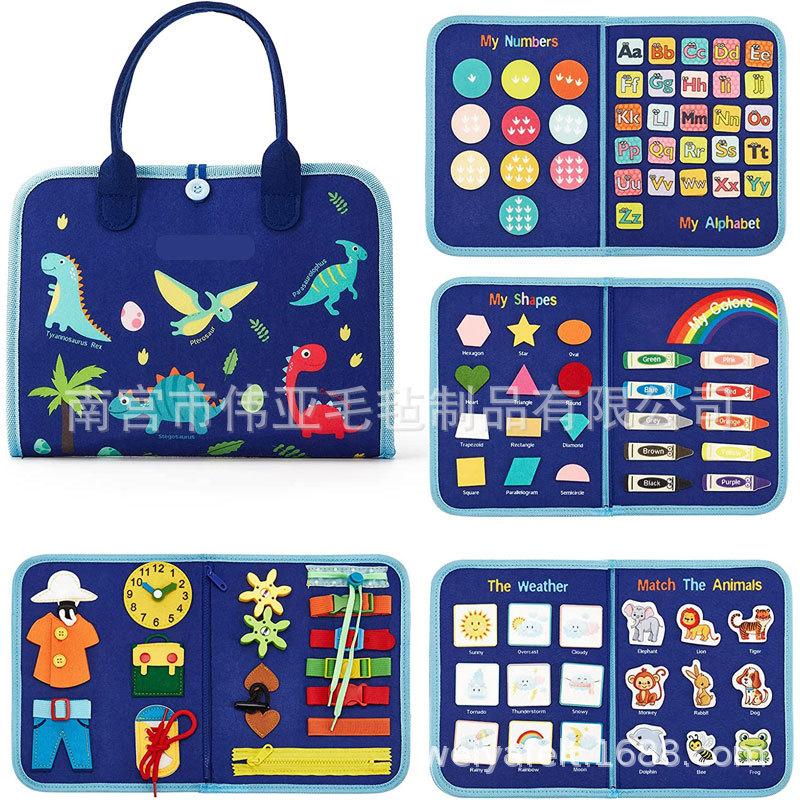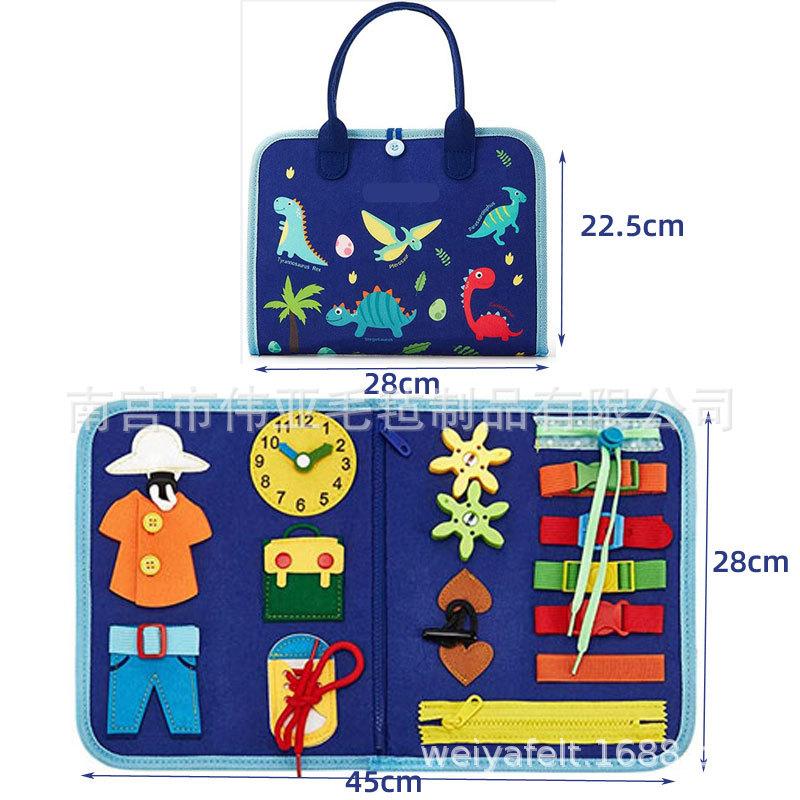 Tablero de actividades de fieltro para niños, tablero de aprendizaje para niños, juguetes de educación temprana, tablero de aprendizaje de dinosaurios de encaje de sentido común de vida