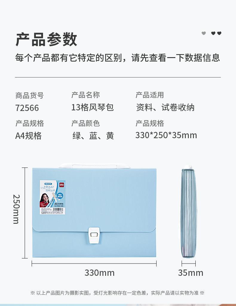 Bolsa de almacenamiento para documentos A4, tamaño A4, tamaño 13, portátil, de gran capacidad, multicapa, Deli 72566