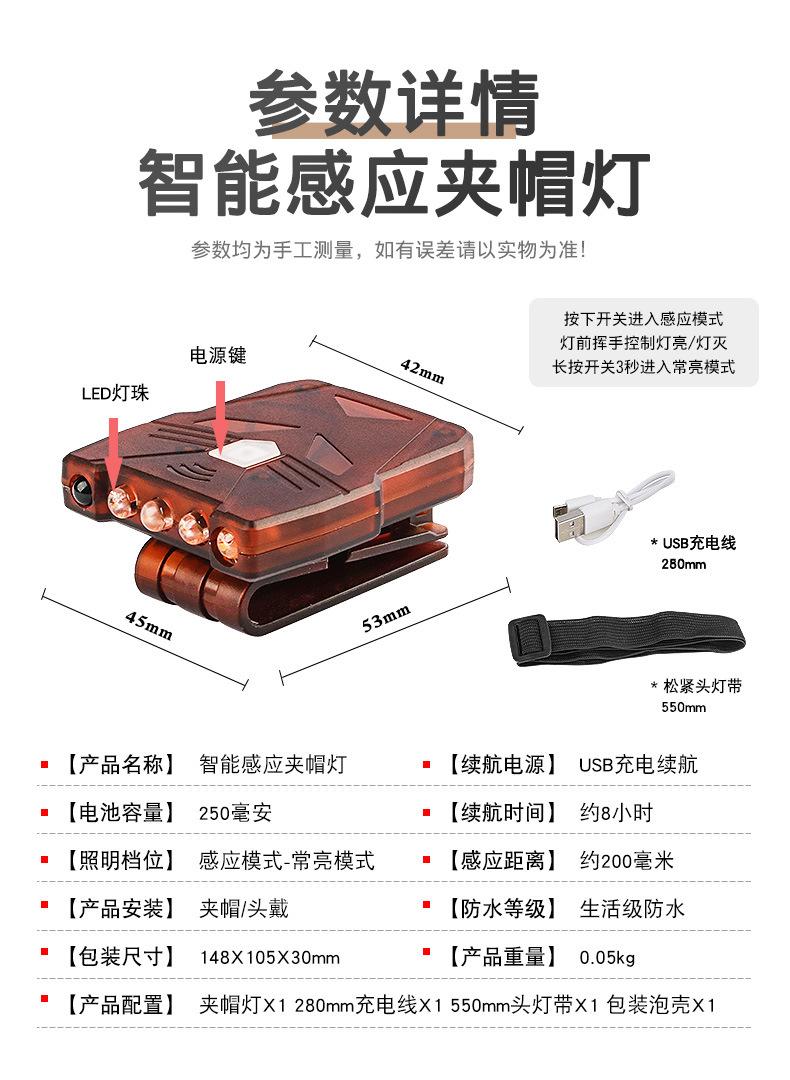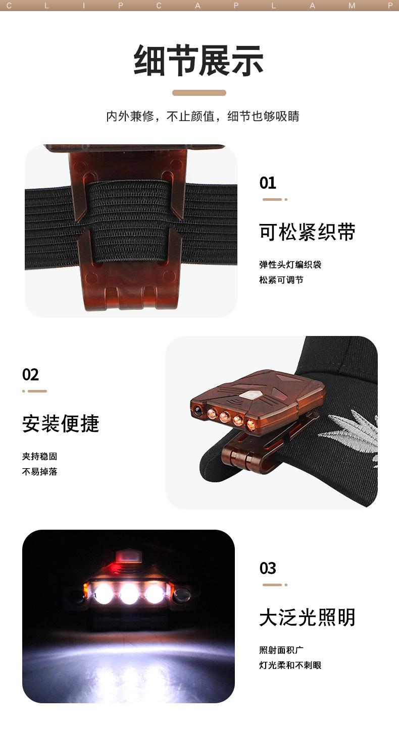 Luz LED para pesca nocturna al aire libre, luz de clip para limpieza de oídos, luz para gorra, recargable, linterna para correr de noche, iluminación para camping y trabajo, faro de emergencia