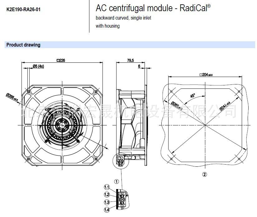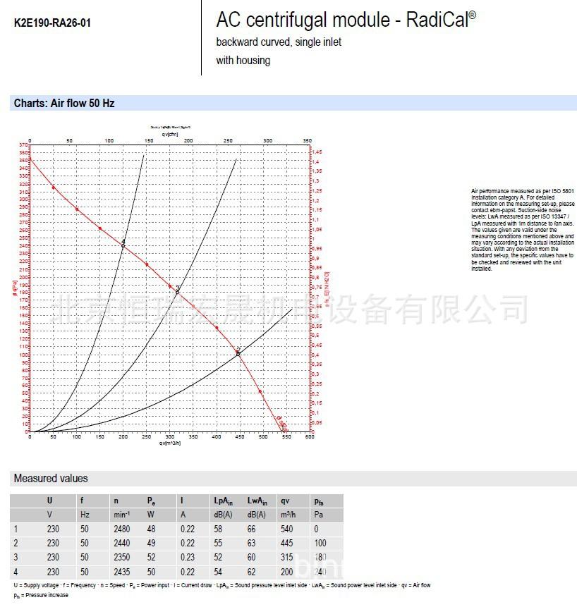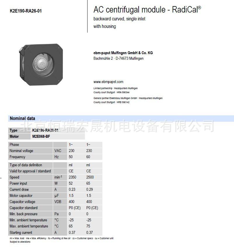 Ventilador turbo centrífugo EBMPAPST K2E190-RA26-01, 230 V, 0,23 A, Alemania