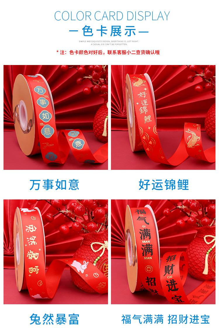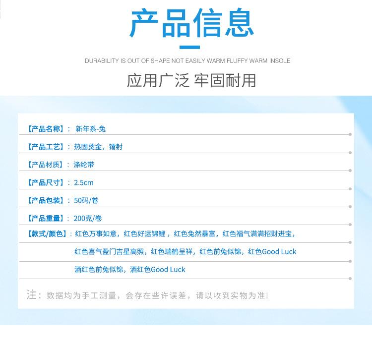 2.5cm polyester belt 50 yards/roll New Year series-rabbit red all the best