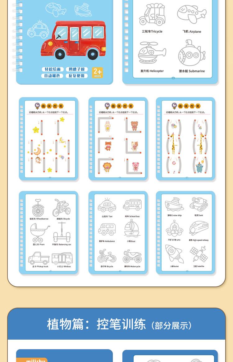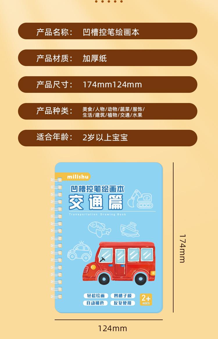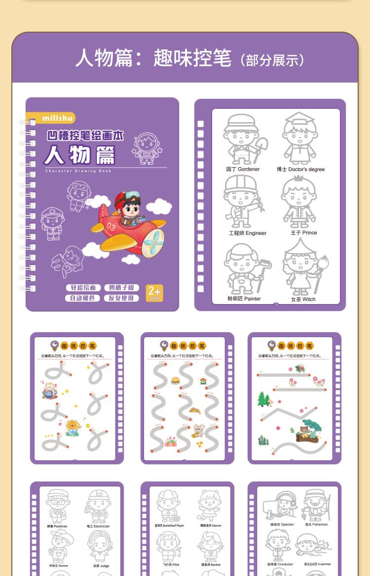 Libro de pintura para niños, cuaderno de entrenamiento con lápiz de control de ranuras, práctica de iluminación para principiantes, libro de pintura de aprendizaje de ranuras para niños de 2 años