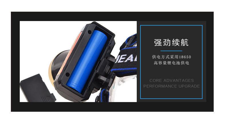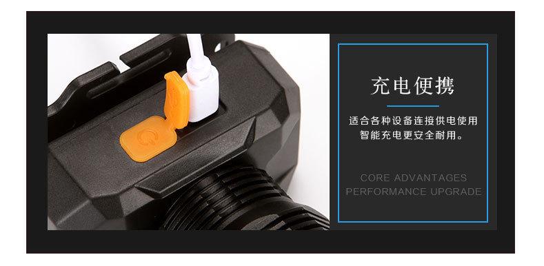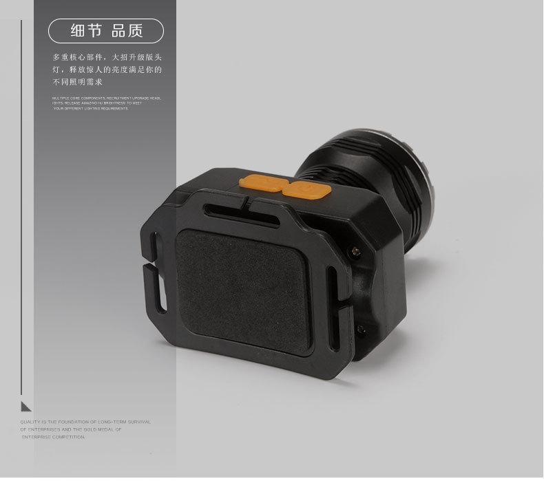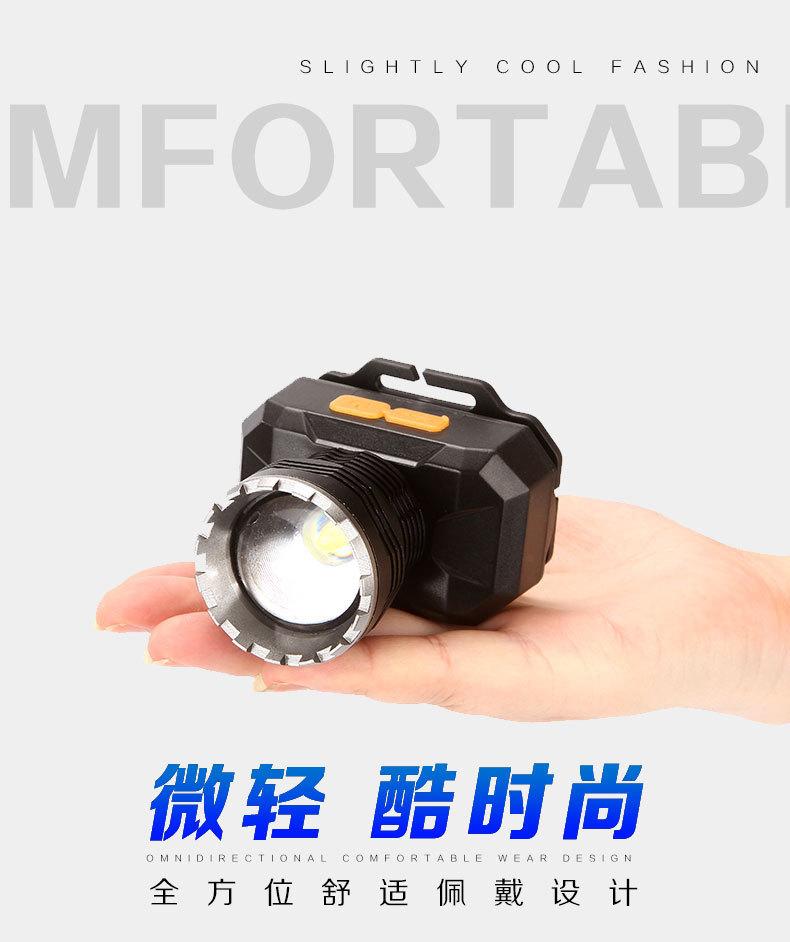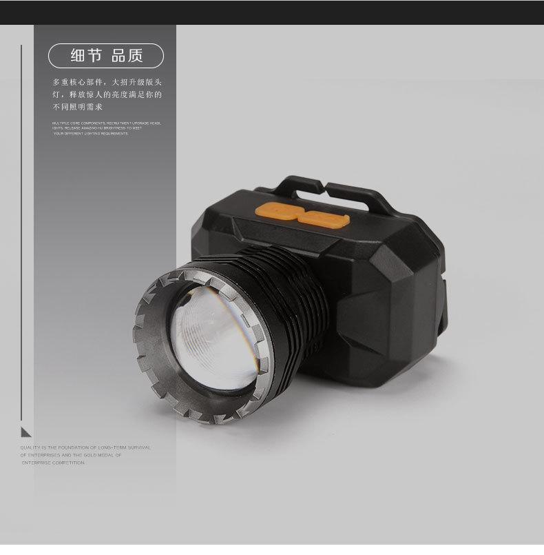 Esta es una linterna frontal de alta gama. Su cabezal está hecho de aleación de aluminio y su mecha es grande.CONDUJOPerlas de lámpara, función de zoom súper brillante