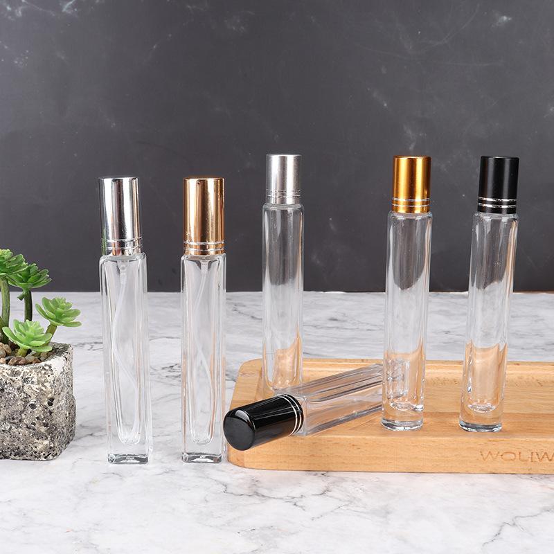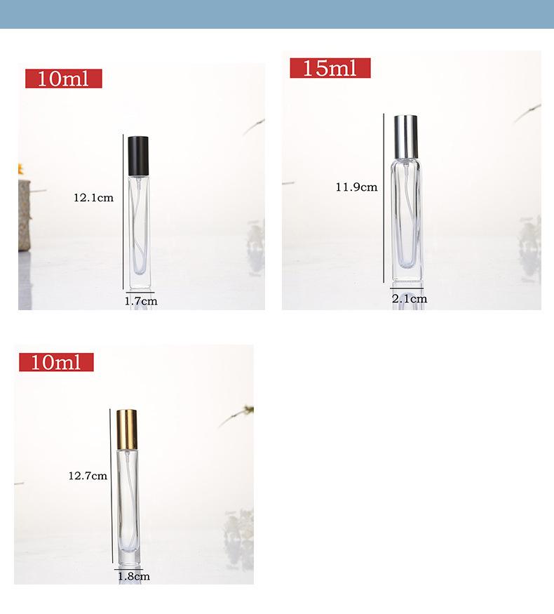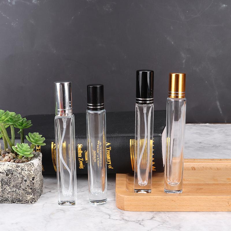 Frasco de perfume de 10 ml, cuadrado, redondo, subenvase cosmético, frasco de muestra pequeño, frasco vacío de bola alta y fina, frasco pulverizador portátil de prensa fina