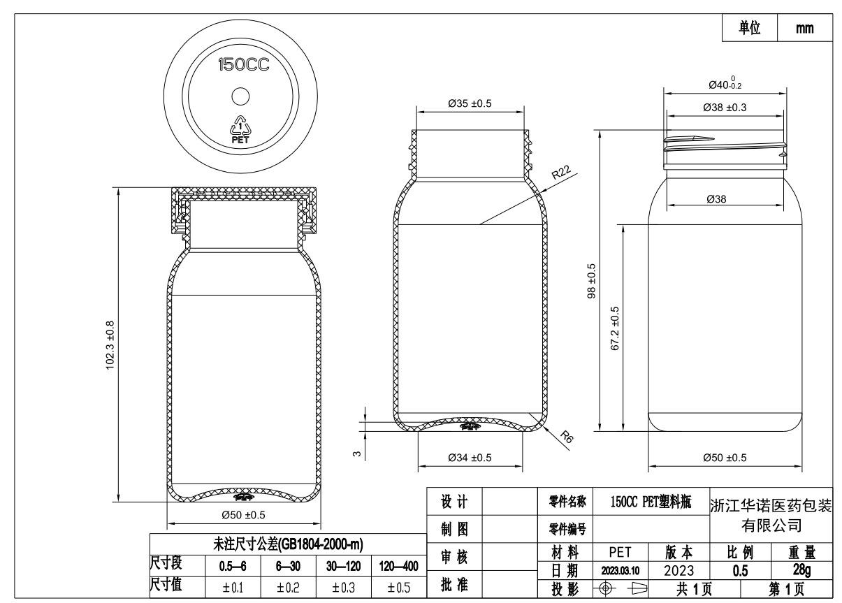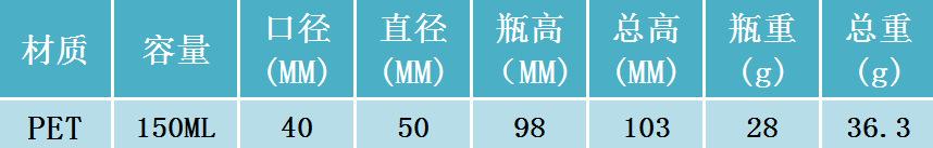 Polvo perlado de alta gama, 150 ml/ml, 40 bocas, envases de plástico PET para alimentos, productos sanitarios, cápsulas y tabletas.