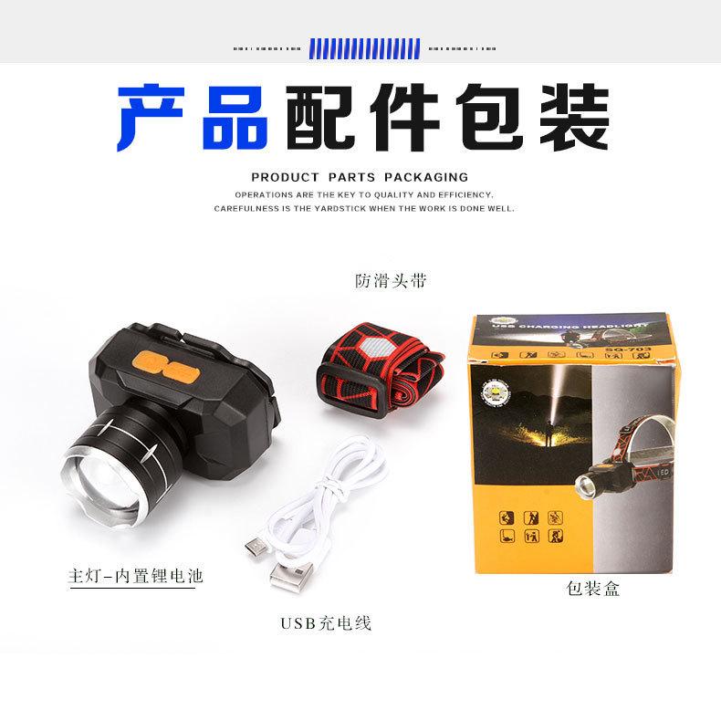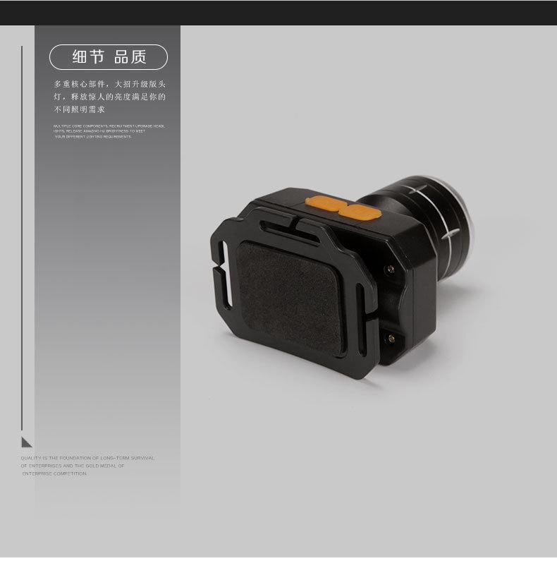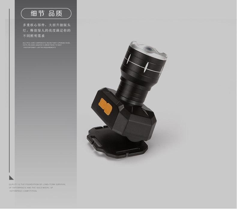 Esta es una linterna frontal de alta gama. Su cabezal está hecho de aleación de aluminio y su mecha es grande.CONDUJOPerlas de lámpara, función de zoom súper brillante