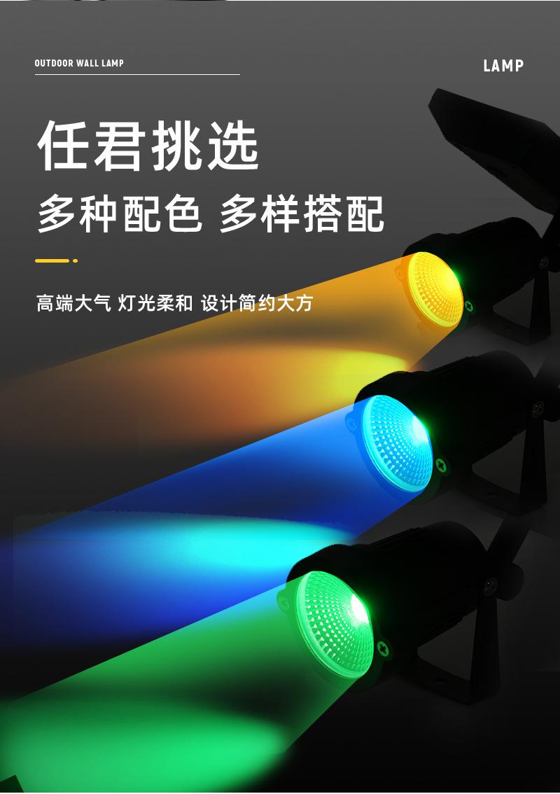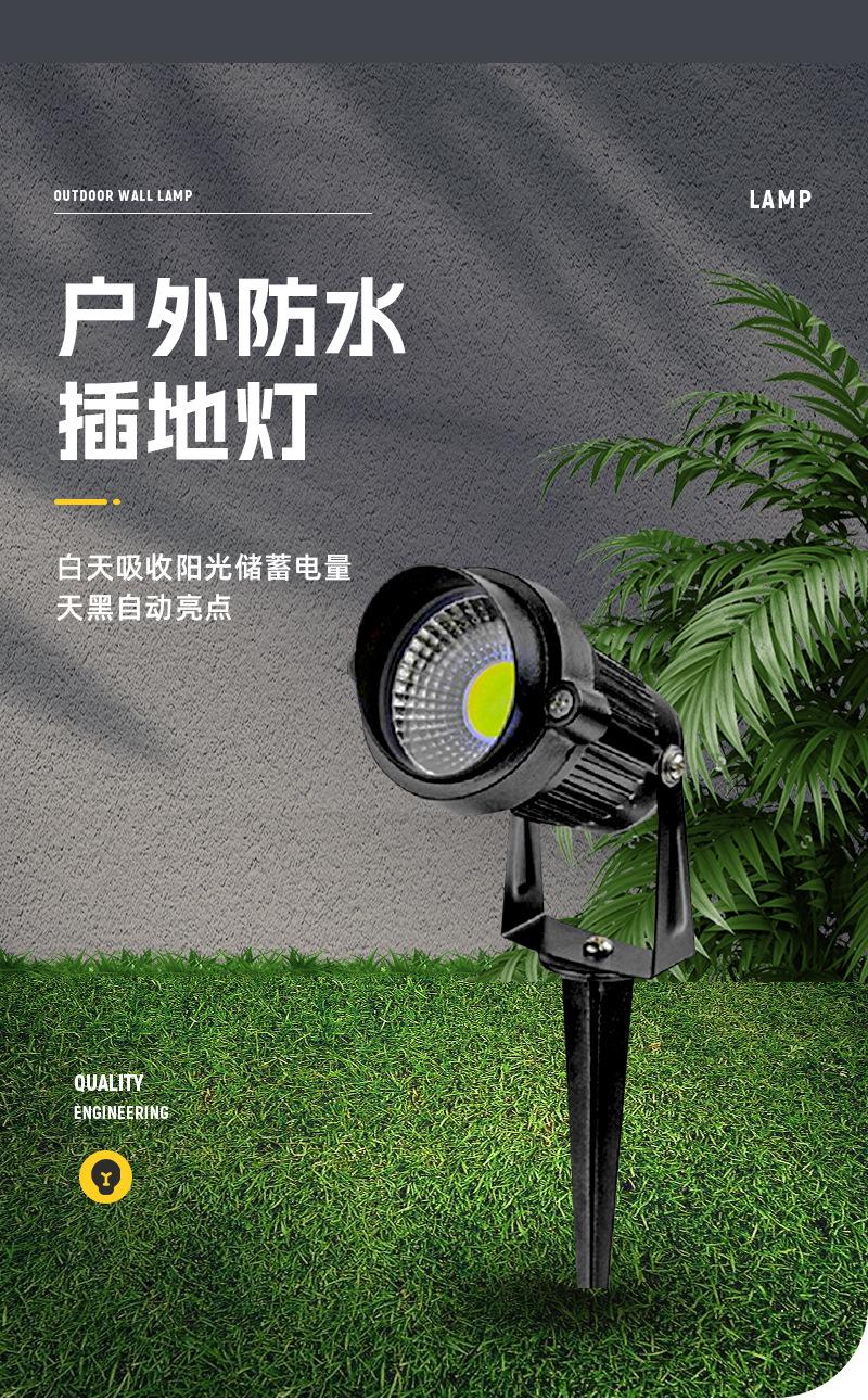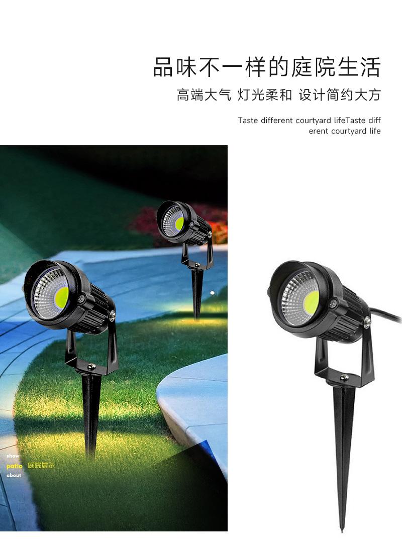 Lámpara de árbol COB impermeable para exteriores de 3W a plena potencia, lámpara de árbol RGB colorida para exteriores de aluminio negro, lámpara de enchufe al por mayor