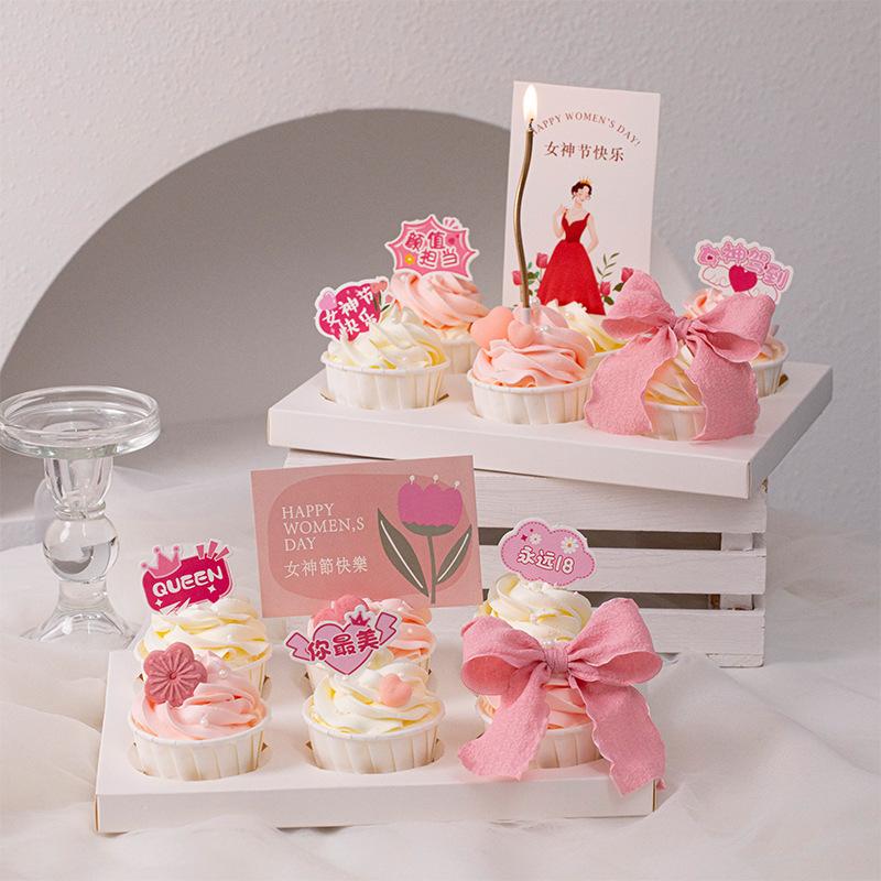 38 Decoración de pastel de papel con tazas del Festival de la Reina 38 Tarjeta feliz del Festival de la Diosa Inserción de tarjeta Complemento de mesa de postres del Día de la Mujer