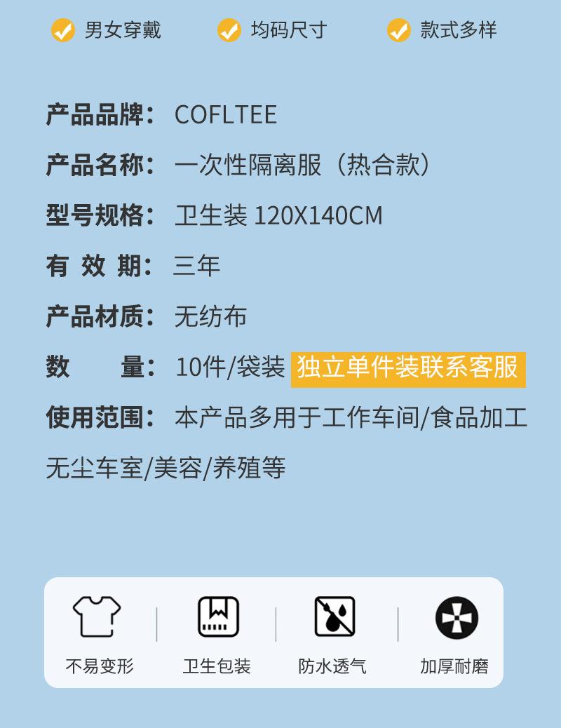 Nombre del producto: Traje de aislamiento termosellado (uso civil) / traje de aislamiento cosido(Civil)