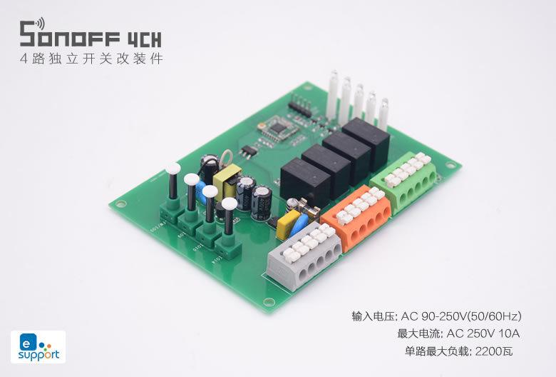 Piezas de modificación del interruptor inteligente WiFi multicanal Sonoff 4CH R2, cada conjunto de control remoto de teléfono móvil independiente