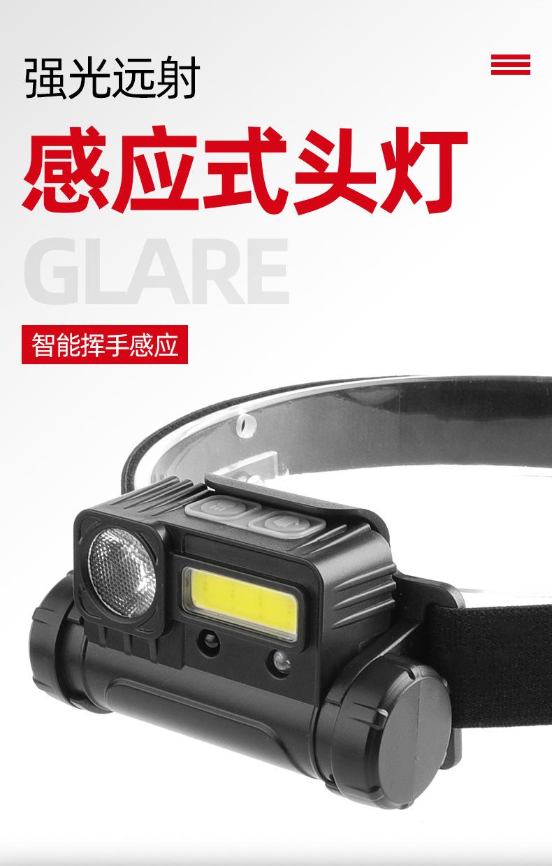 Faros delanteros con inducción de onda de luz LED potentes transfronterizos, montados en la cabeza, luces de ciclismo para exteriores, luces de carrera nocturna con carga USB