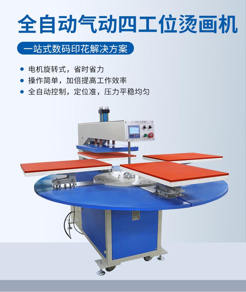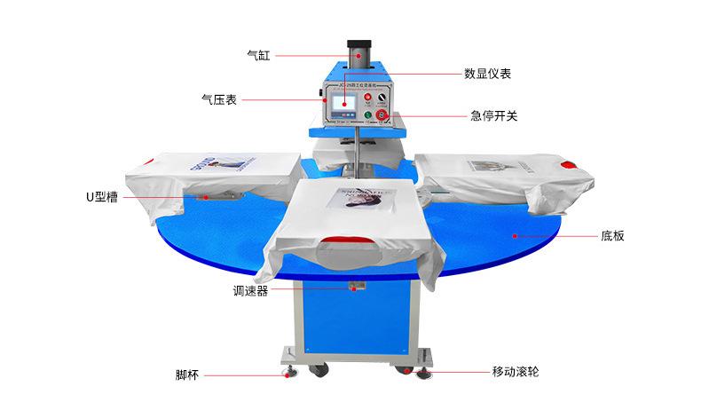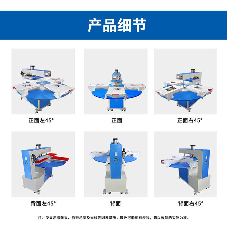 Los fabricantes recomiendan máquina neumática de estampado en caliente de cuatro estaciones totalmente automática rotativa para camisetas, prenda, pieza de corte de prenda, máquina de transferencia de calor para prendas