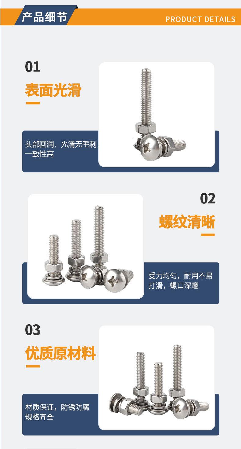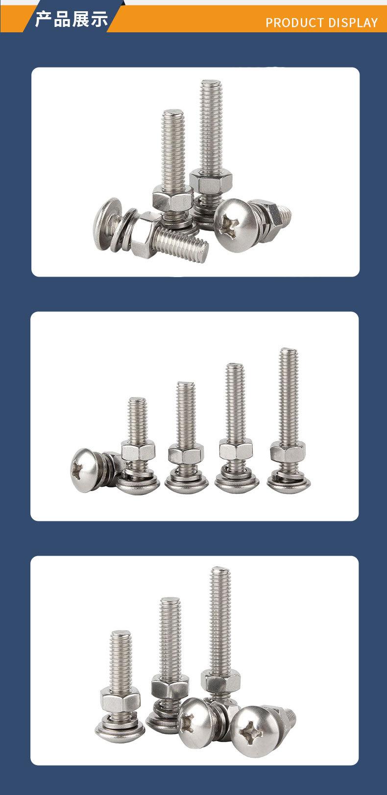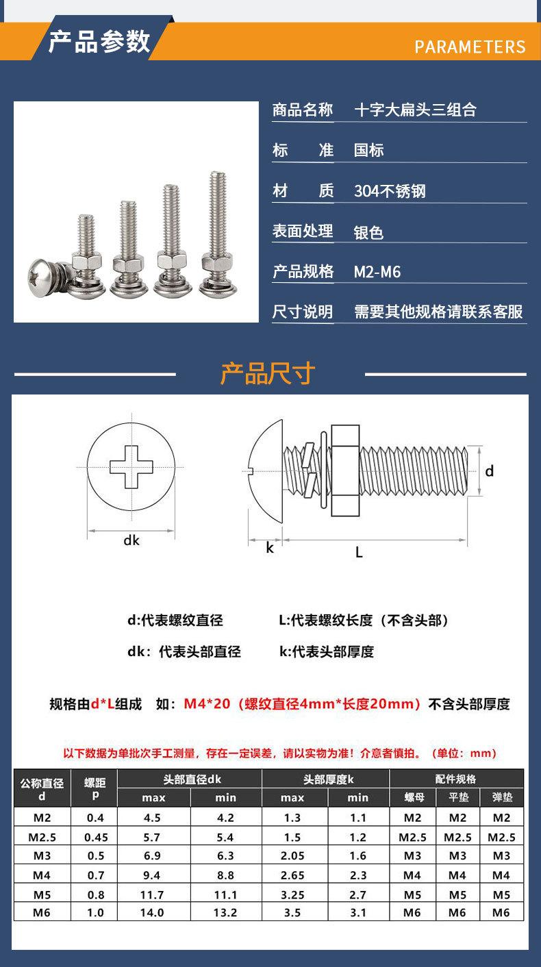Tornillo combinado de acero inoxidable 304 de cabeza plana cruz grande combinación de arandela plana cabeza plana grande M2M3M4M5M6