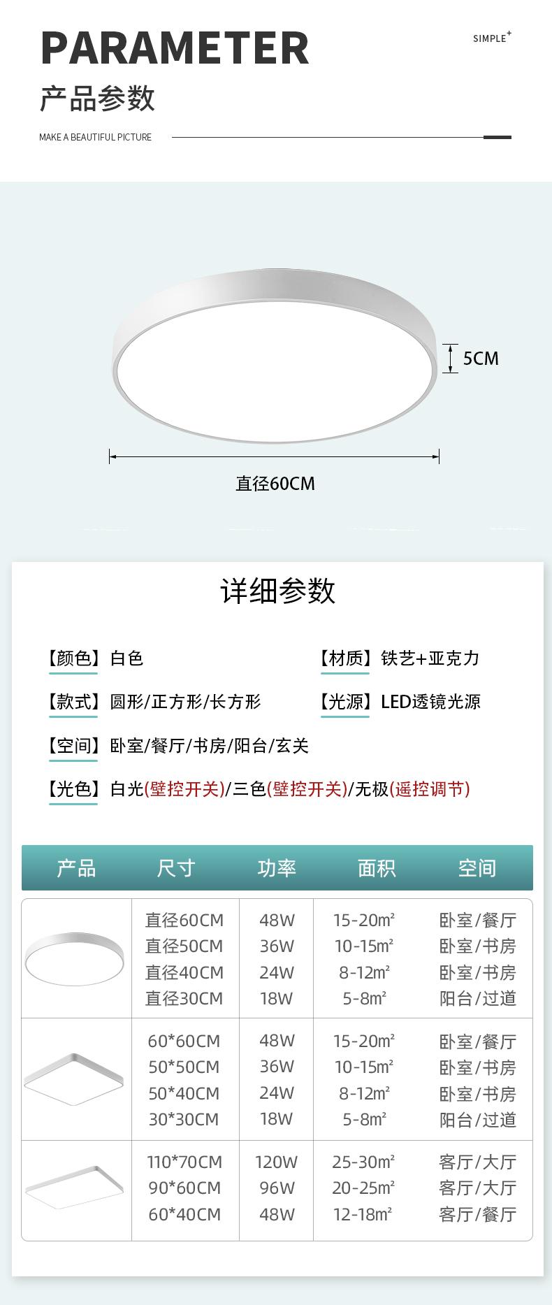 Tianyuan 30cm-18W, Tianyuan 40cm-24w, Tianyuan 50cm-36W, Tianyuan 60cm-48W, Tianyuan 80cm-96W, Place 30x30cm-1...