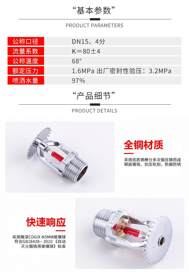 Rociador contra incendios de cobre de 68 grados, rociador vertical de pulverización rápida hacia arriba y hacia abajo, suministro directo de fábrica