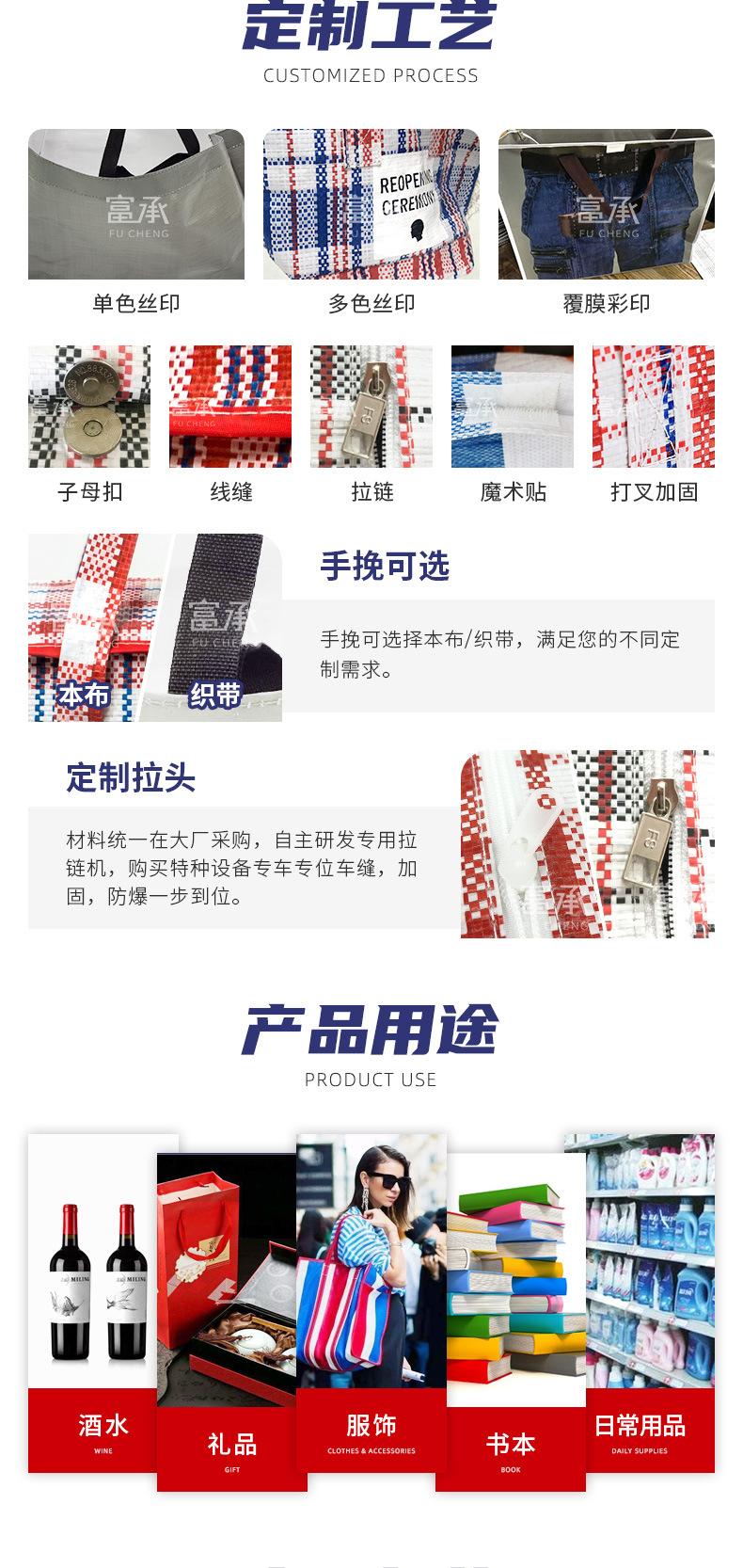 Bolsa tejida de mano gruesa impermeable personalizada con impresión de logotipo, bolsa publicitaria, impresión a color, película, piel de serpiente, bolsa de compras