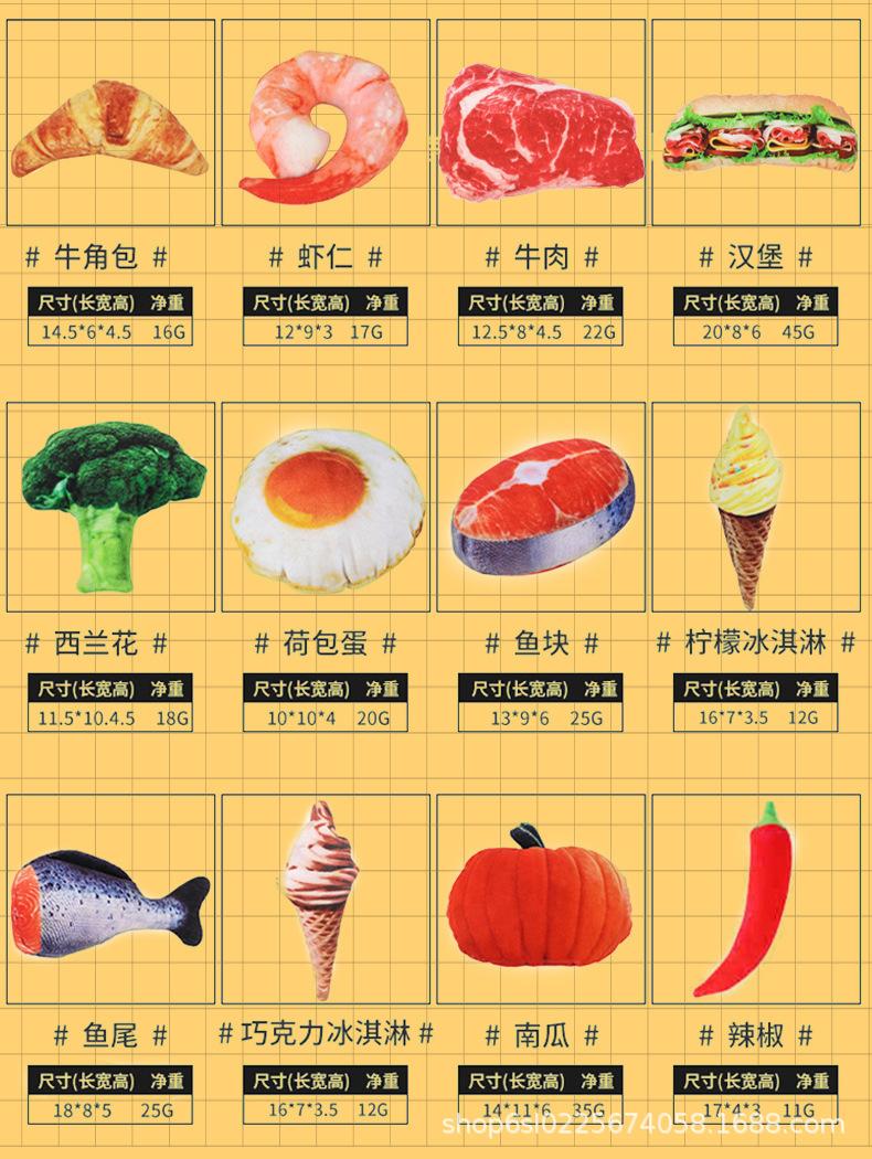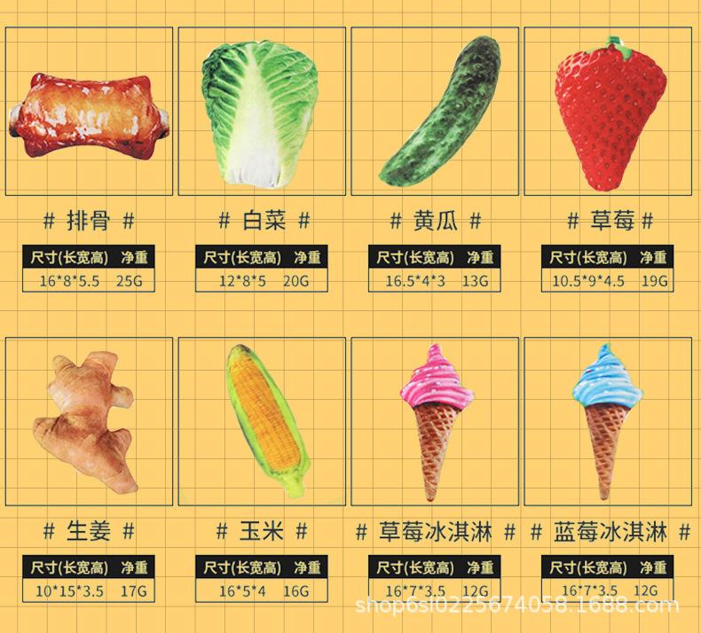 Cabbage, Yellow ice cream, Strawberry, Pink ice cream, Bone, Hamburger, Poached egg, Carrot, Cucumber, Chicken...