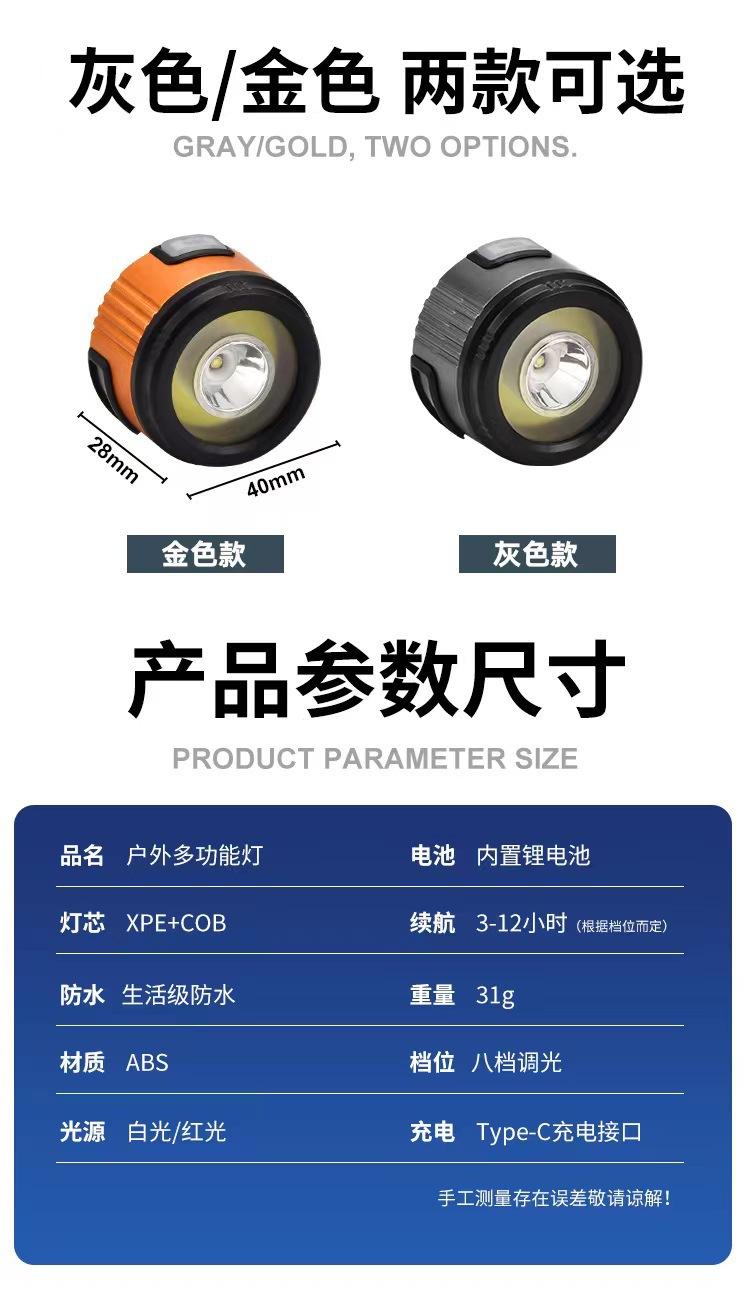 Lámpara de abrazadera magnética con carga USB tipo C multifunción transfronteriza, luz roja y blanca, luz suave para acampar al aire libre