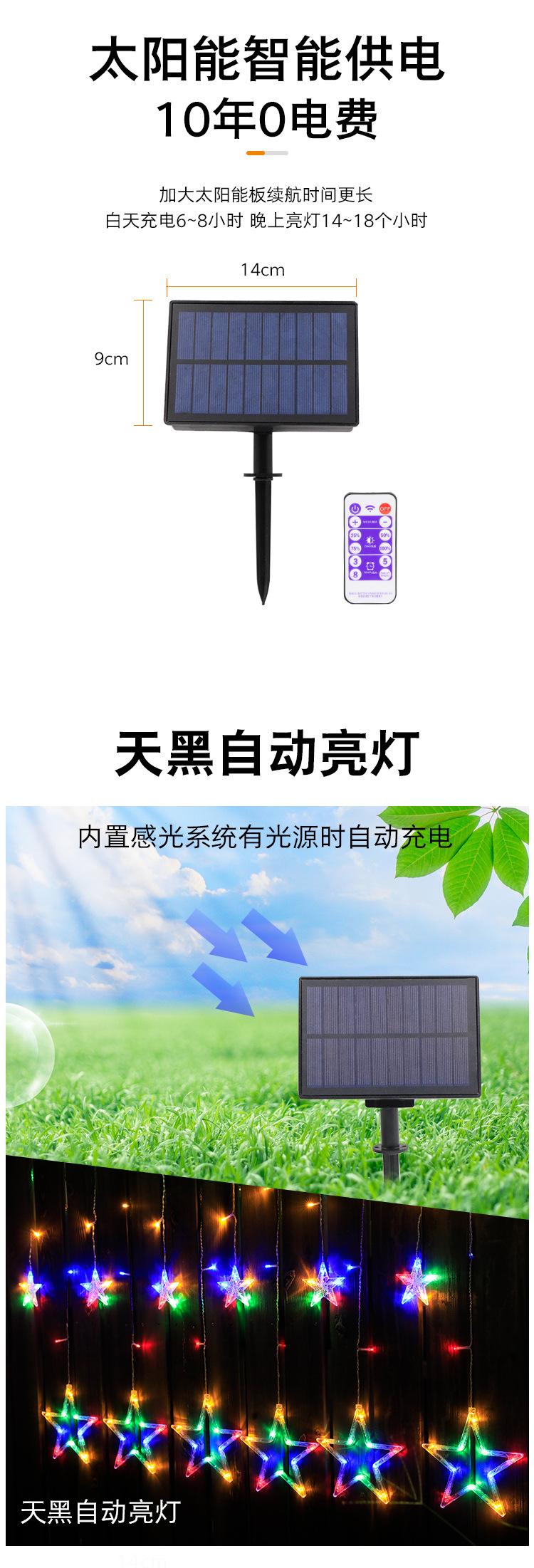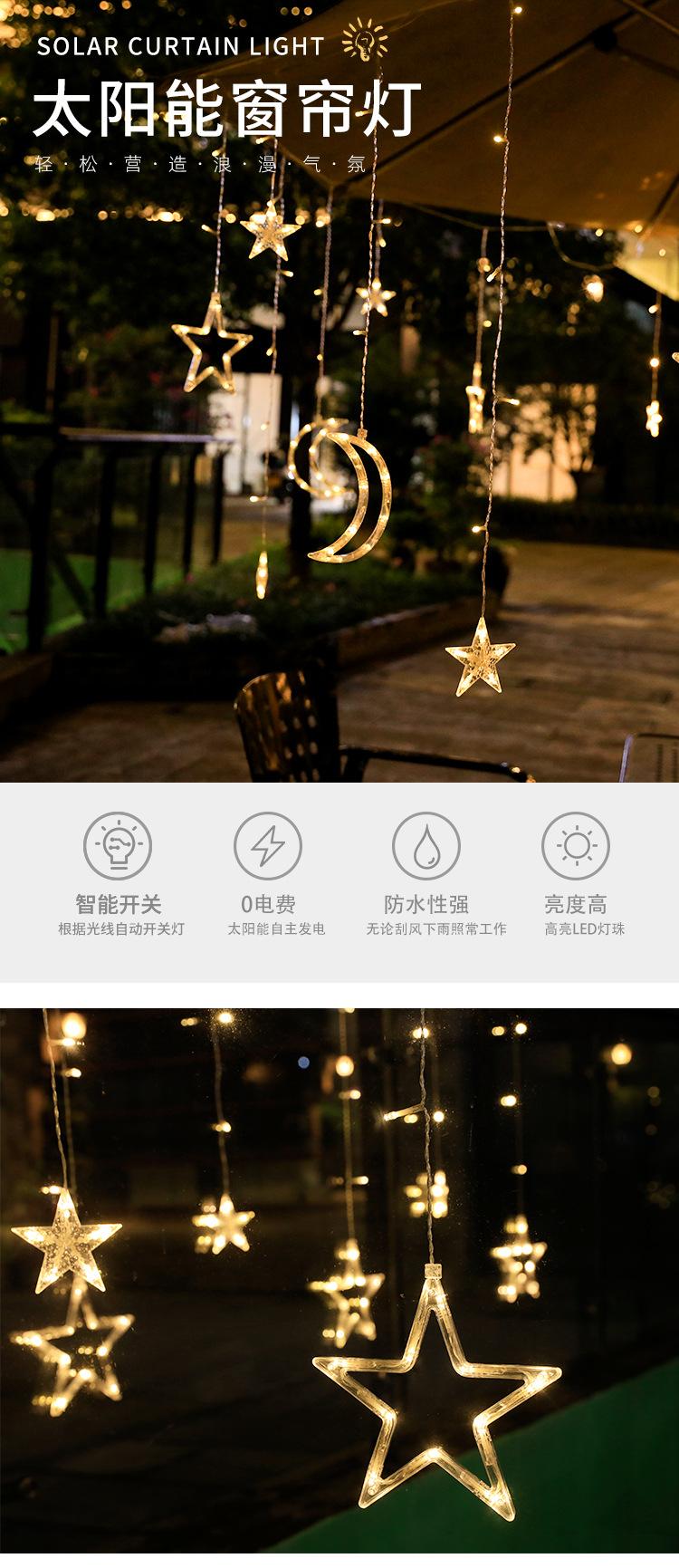 Luces de cortina de estrellas y lunas solares transfronterizas de Amazon, luces de estrellas, luces de decoración de patio navideño, luces impermeables, luces de cadena