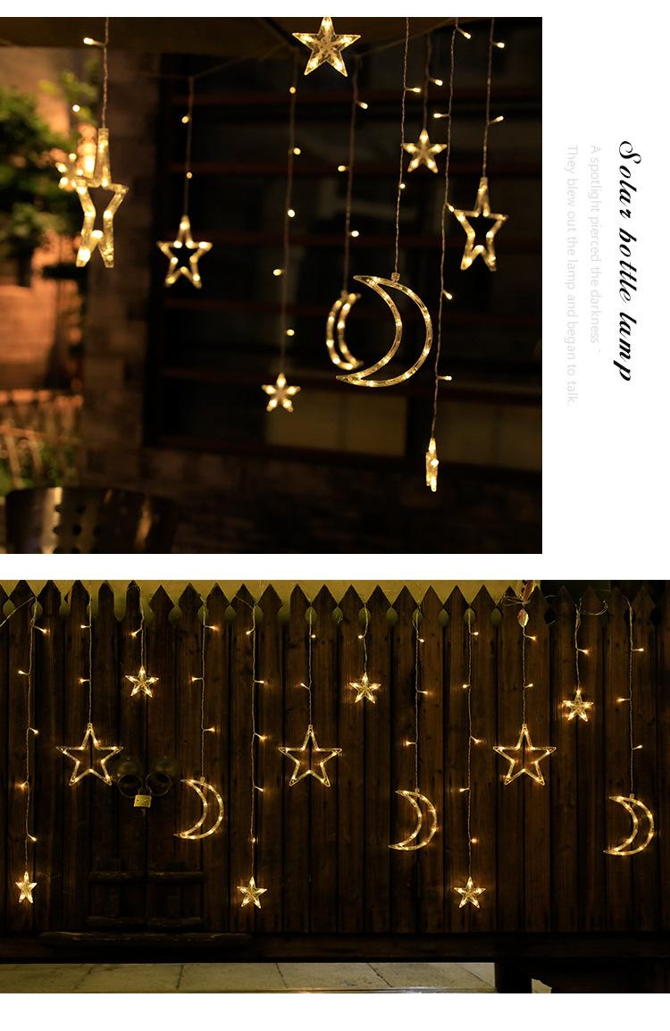 Compra Luces de cortina de estrellas y lunas solares transfronterizas de Amazon, luces de estrellas, luces de decoración de patio navideño, luces impermeables, luces de cadena al por mayor en Joom.pro