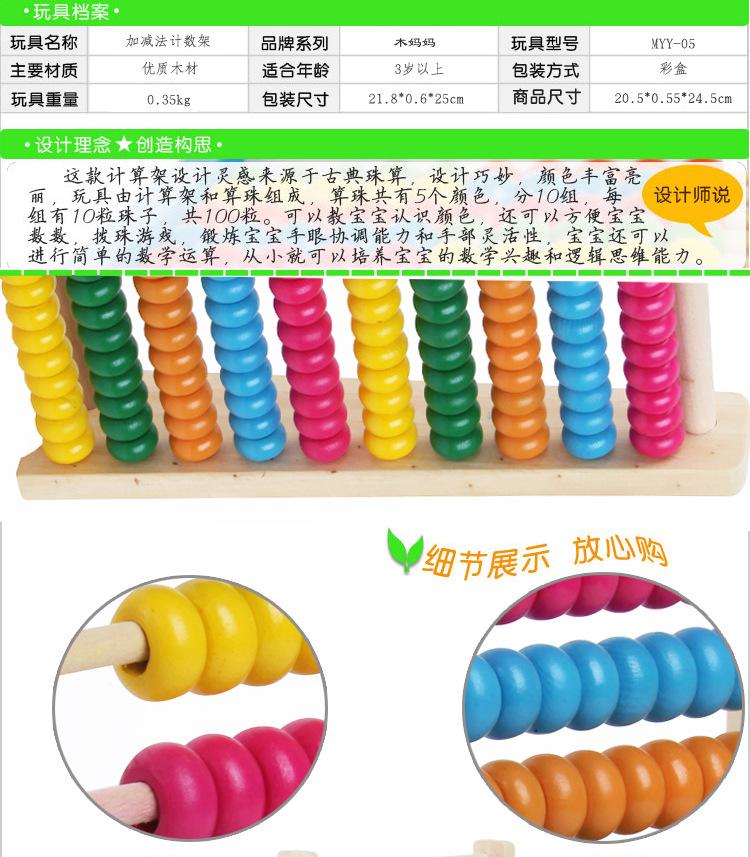 Ábaco de diez filas Ábaco de cuentas de madera Ábaco educativo para la primera infancia Rompecabezas educativo Juguetes matemáticos para calcular Contadores para estudiantes de primaria