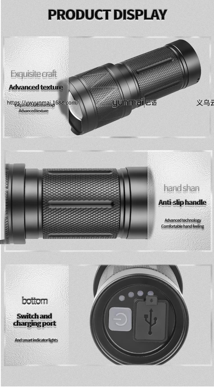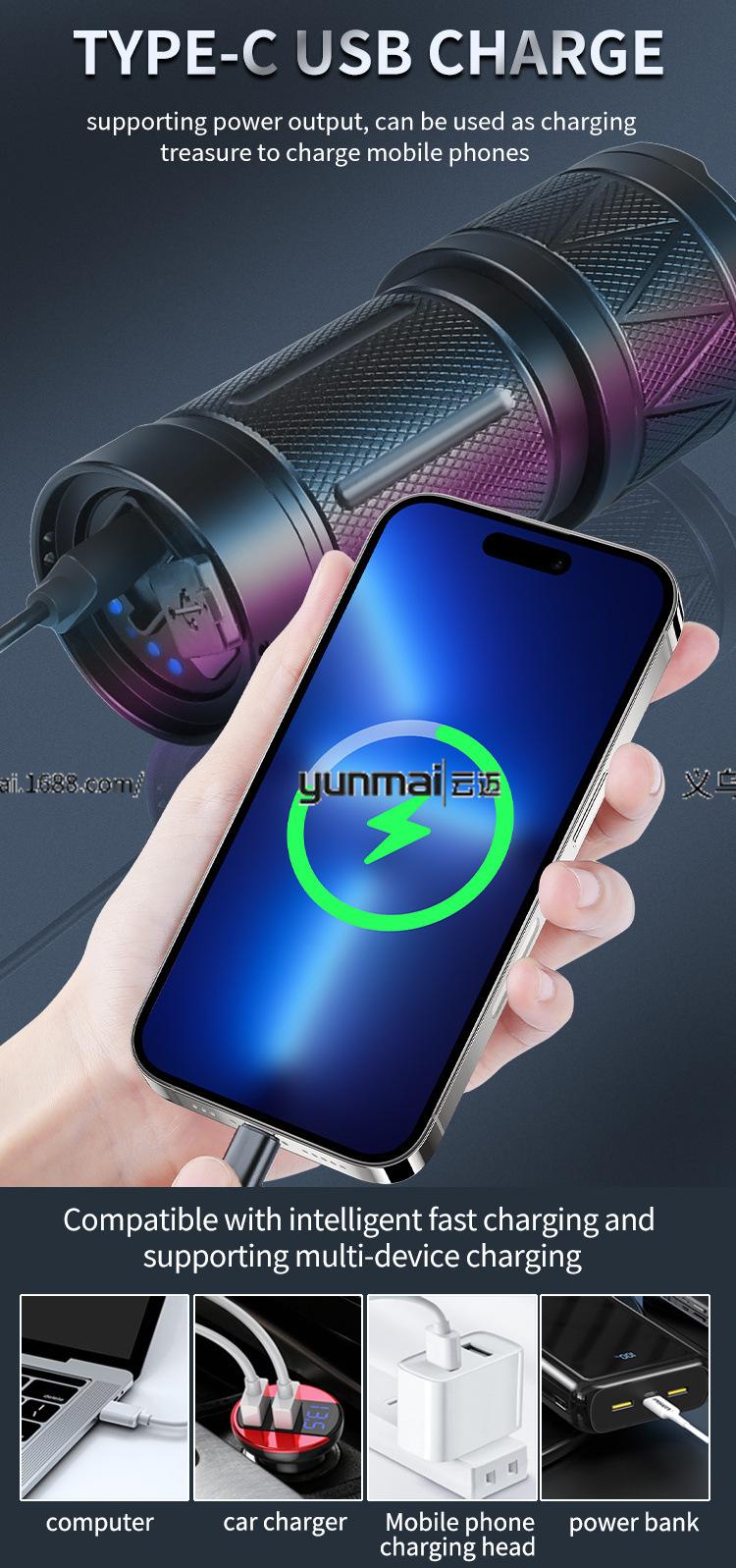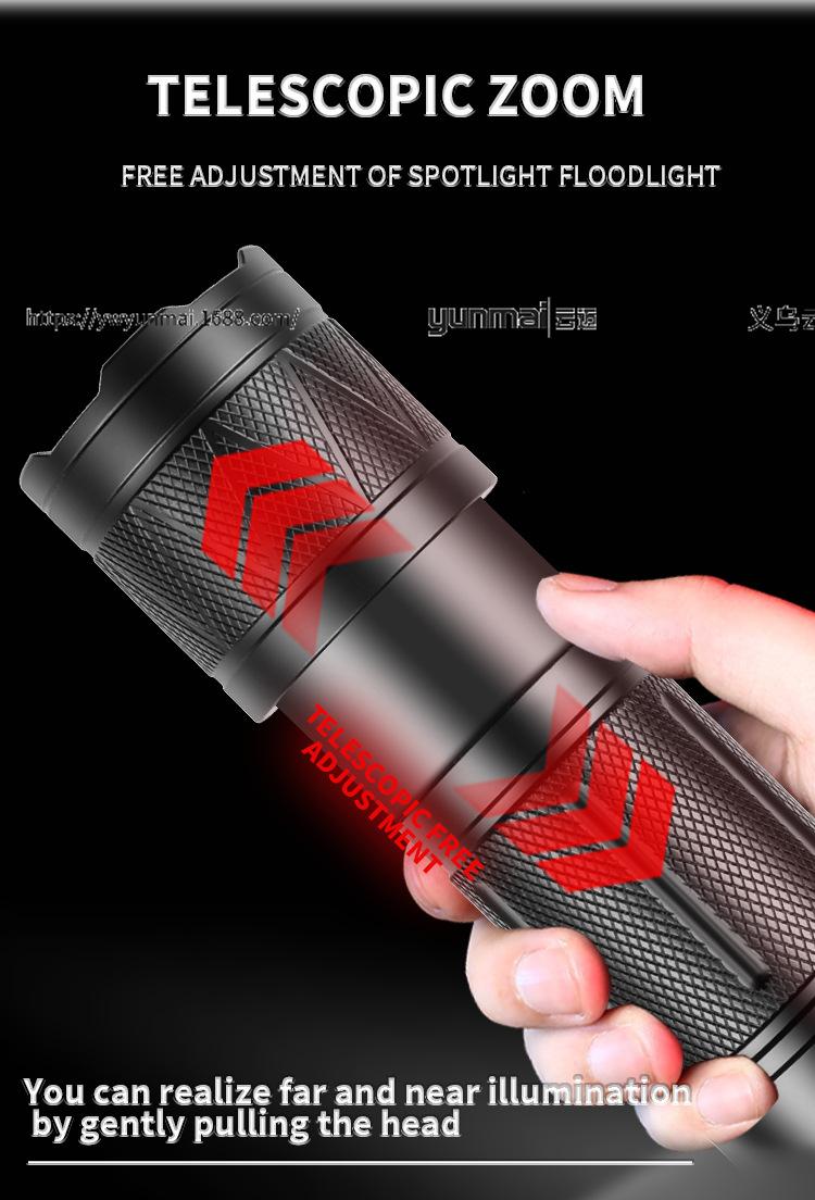 | Características | Pistola pequeña de acero rentable, admite salida, se puede usar como un banco de energía en la naturaleza, foco láser blanco con zoom telescópico, alcance ultralargo, cuerpo de la lámpara con textura antideslizante |