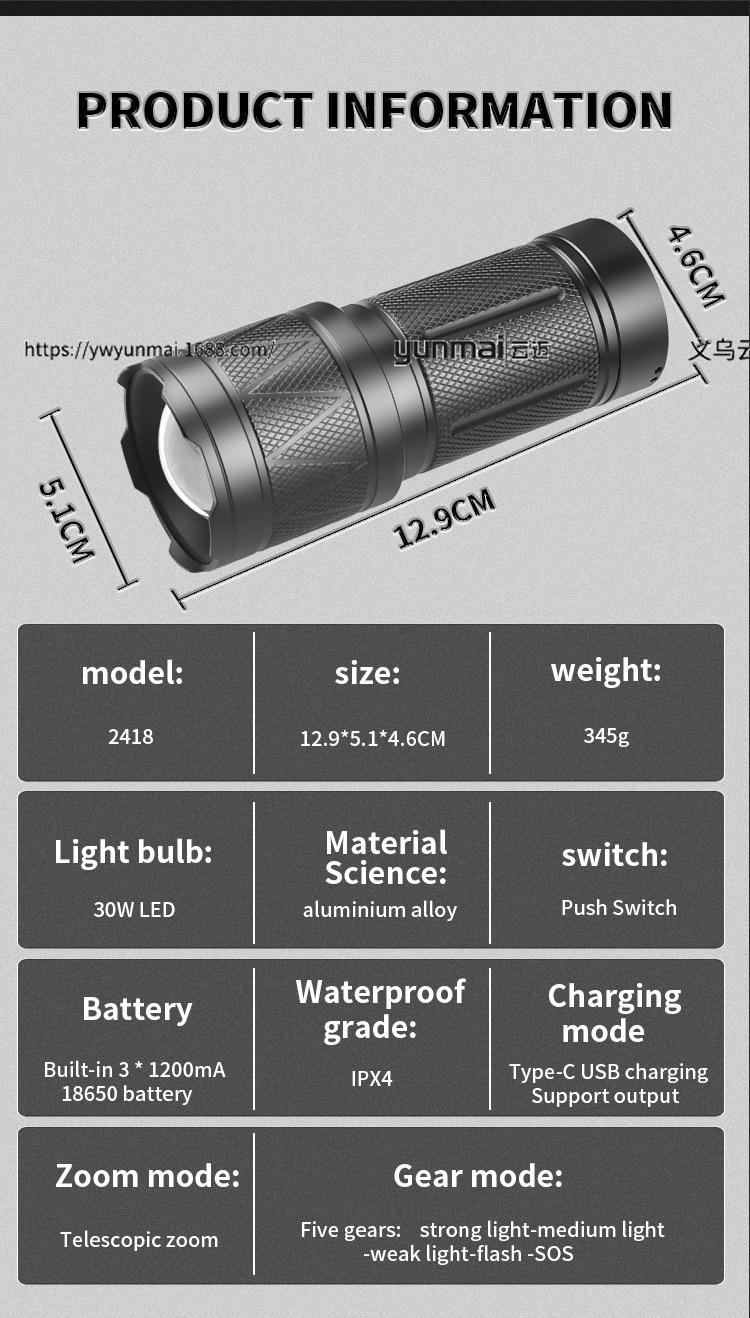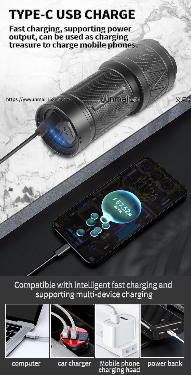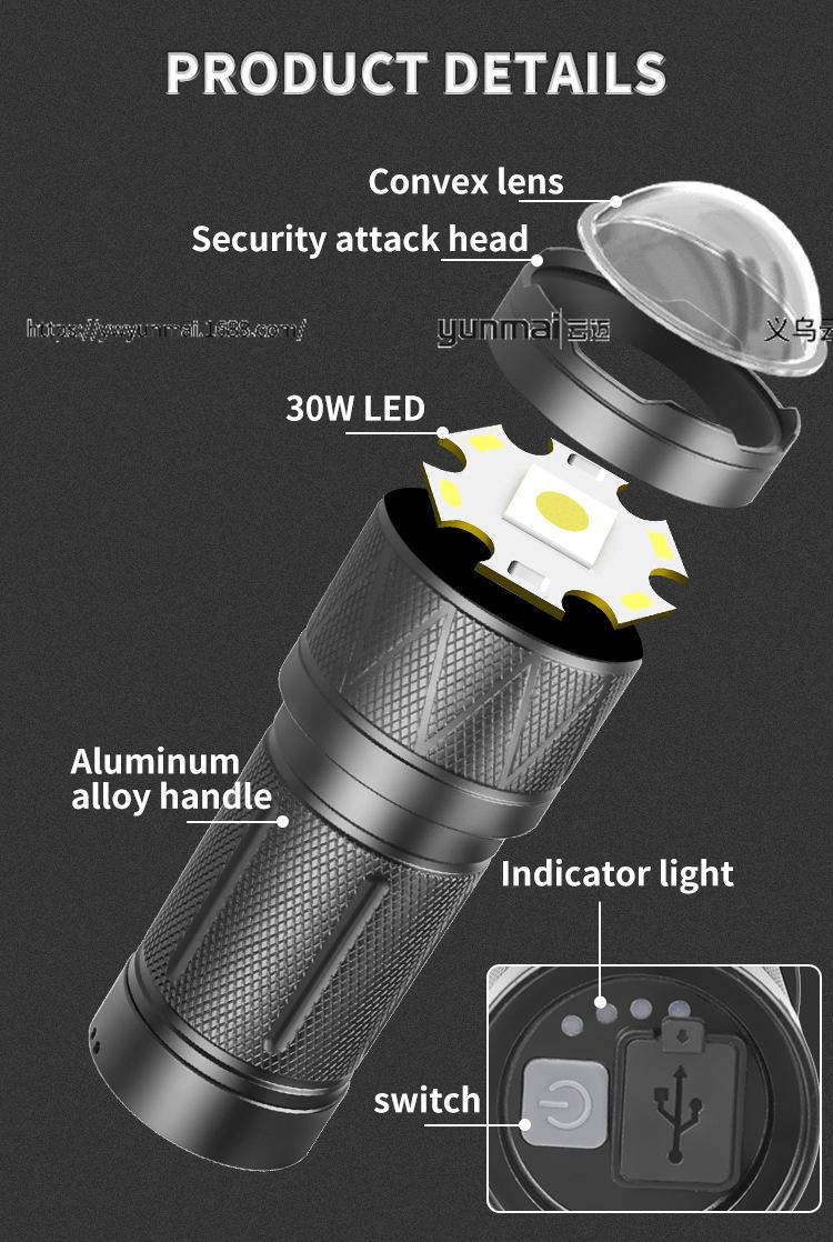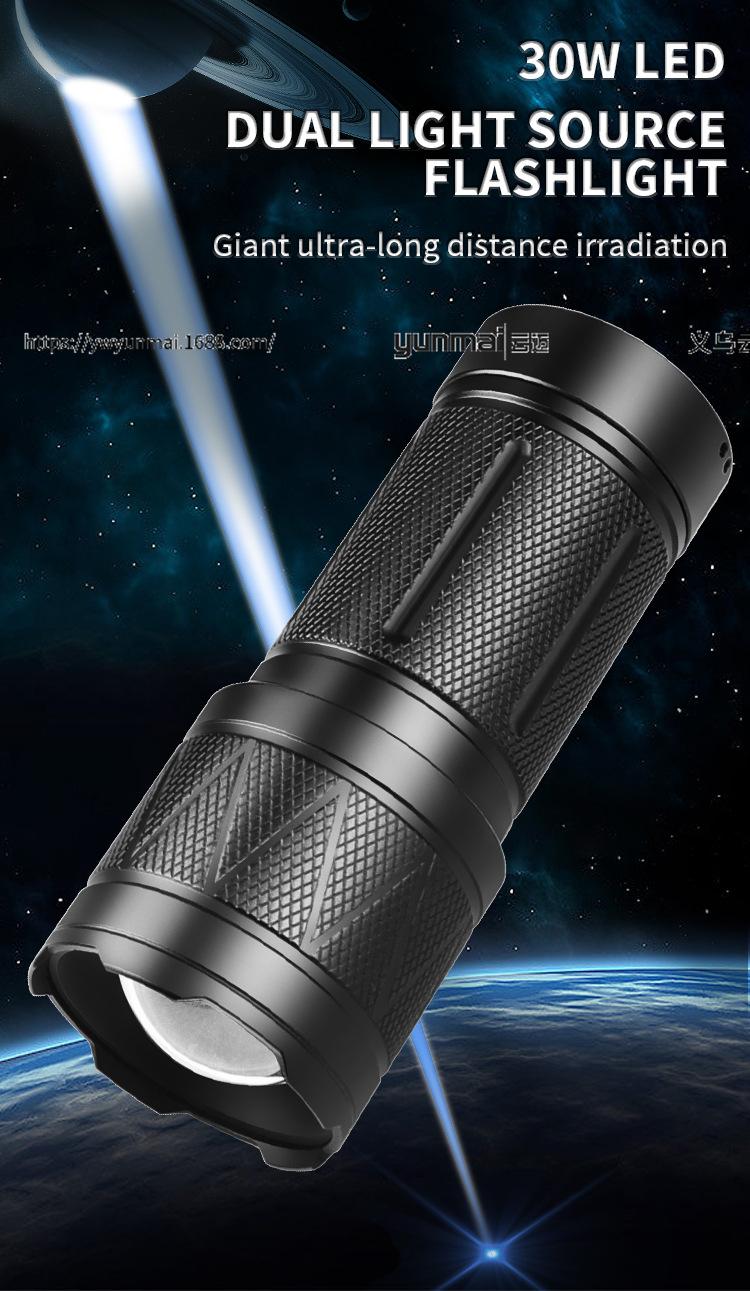 | Características | Pistola pequeña de acero rentable, admite salida, se puede usar como un banco de energía en la naturaleza, foco láser blanco con zoom telescópico, alcance ultralargo, cuerpo de la lámpara con textura antideslizante |