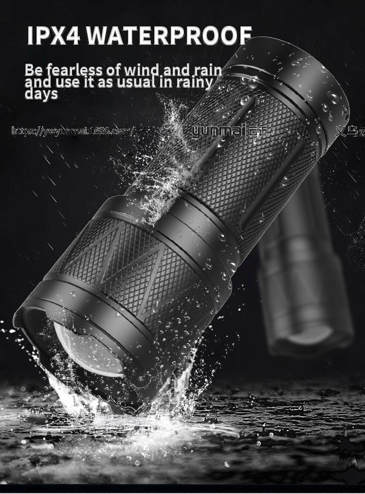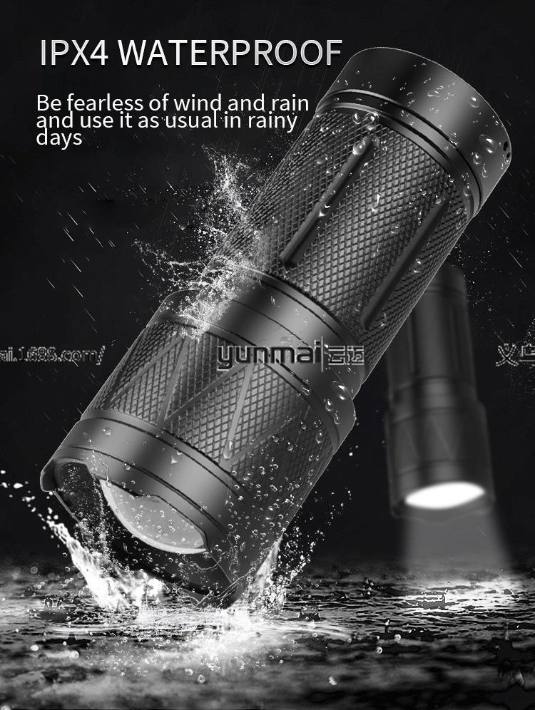 6. La linterna de la compañía es resistente al agua para uso diario y no causará problemas con la lluvia. Sin embargo, no tiene función de buceo. No la lleve consigo para bucear ni la deje en un lavabo o bañera durante mucho tiempo.