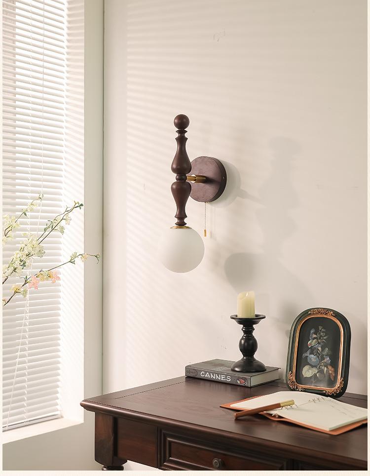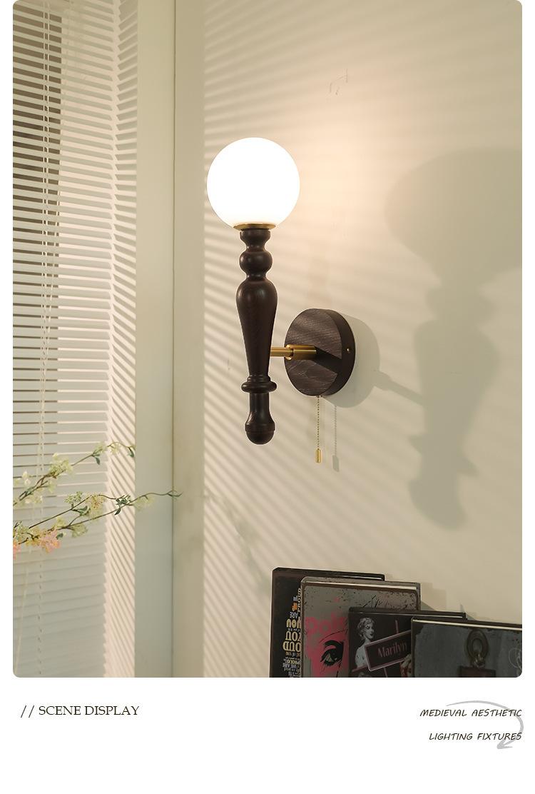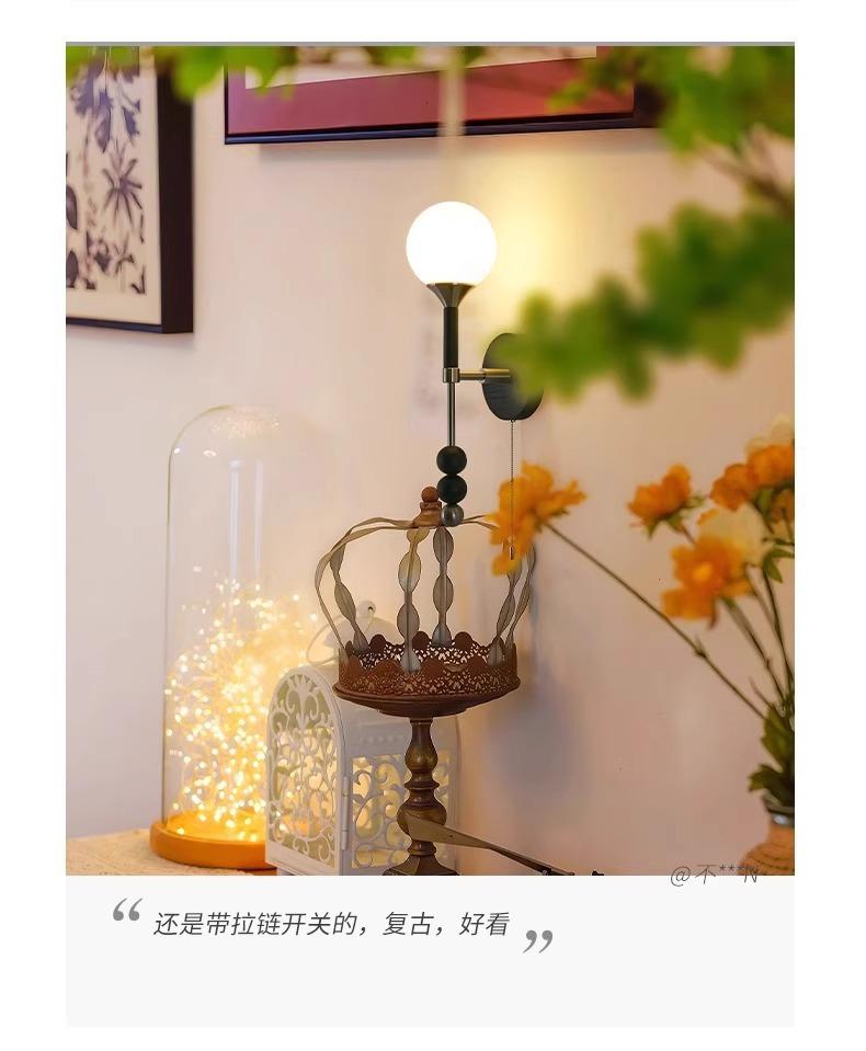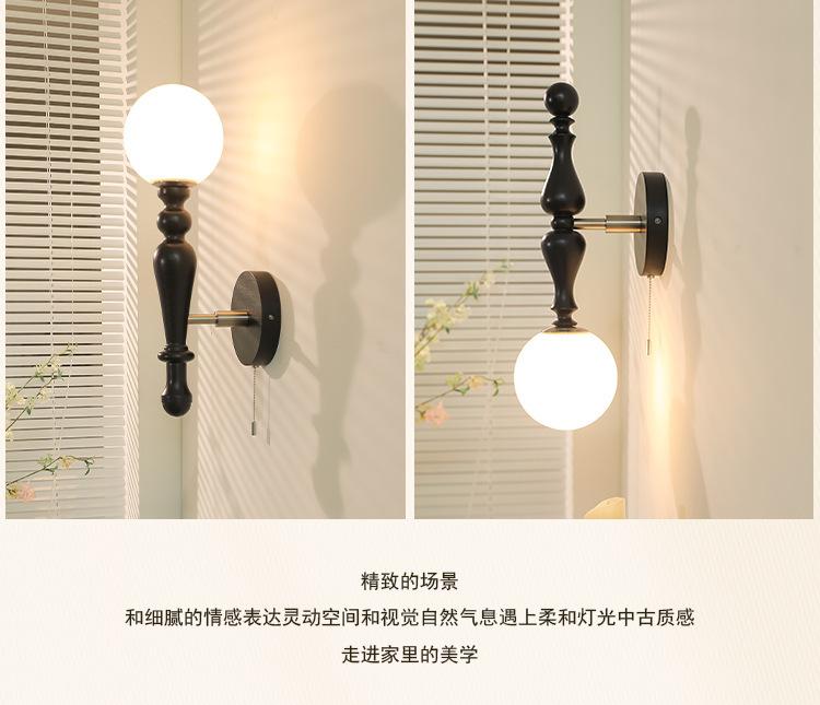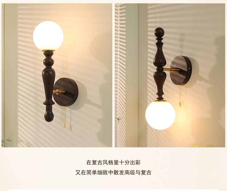 Lámpara de araña pequeña francesa antigua de estilo americano con interruptor de tracción de cable, lámpara de pared para dormitorio, lámpara de noche pequeña, lámparas de nogal