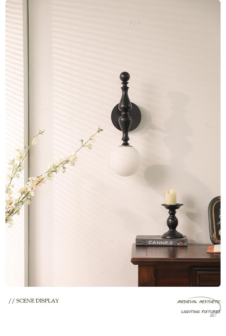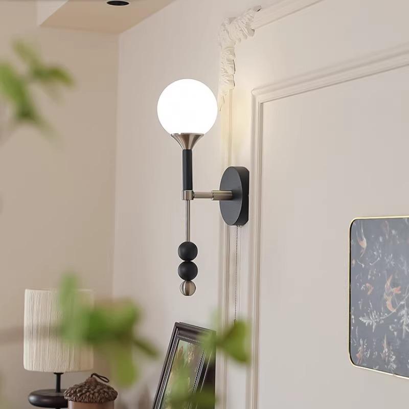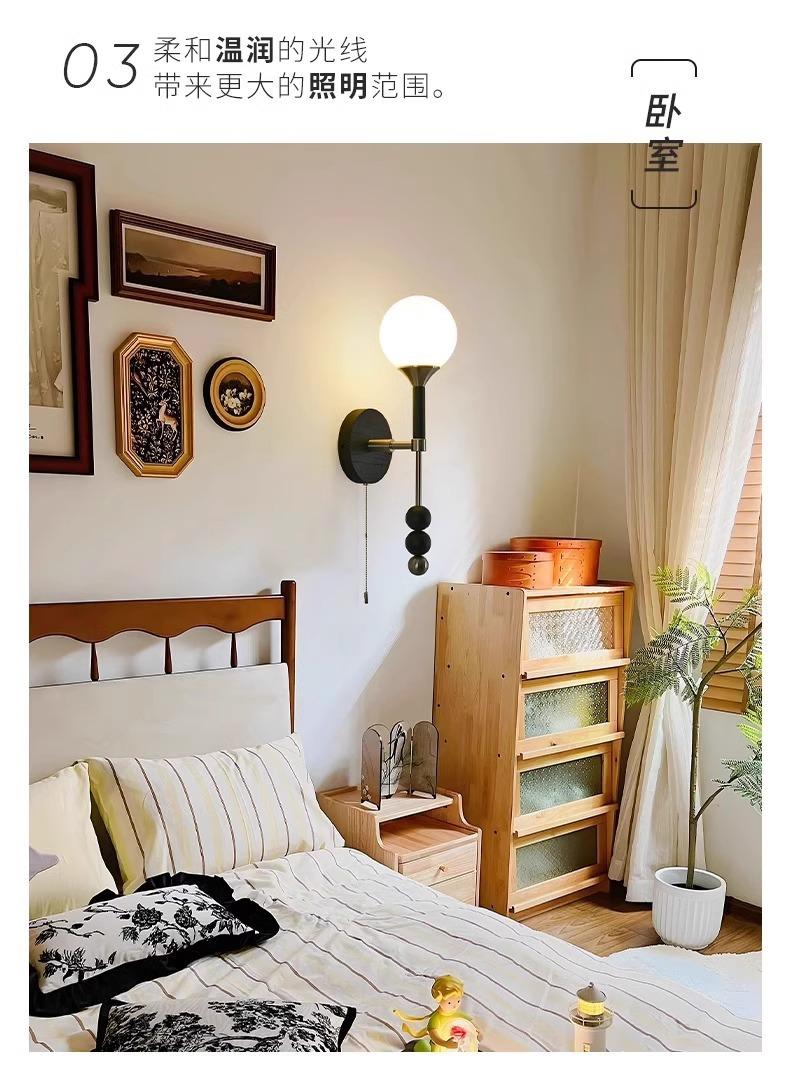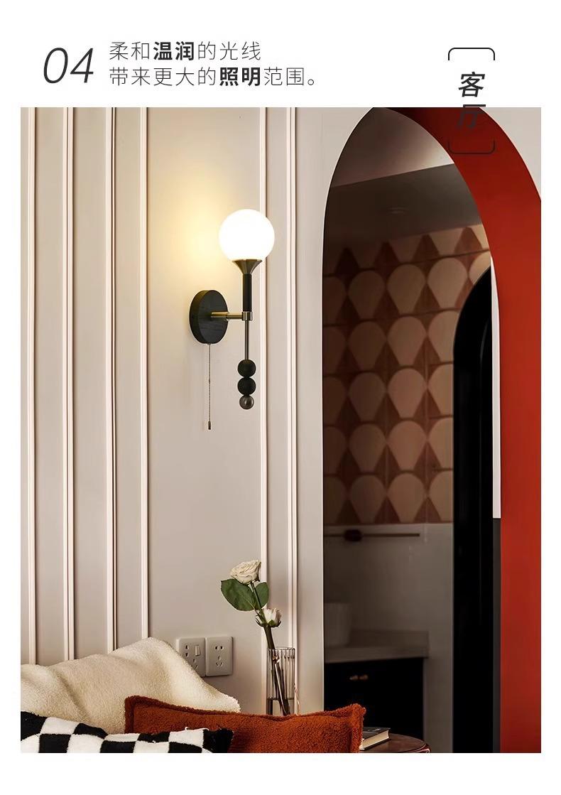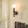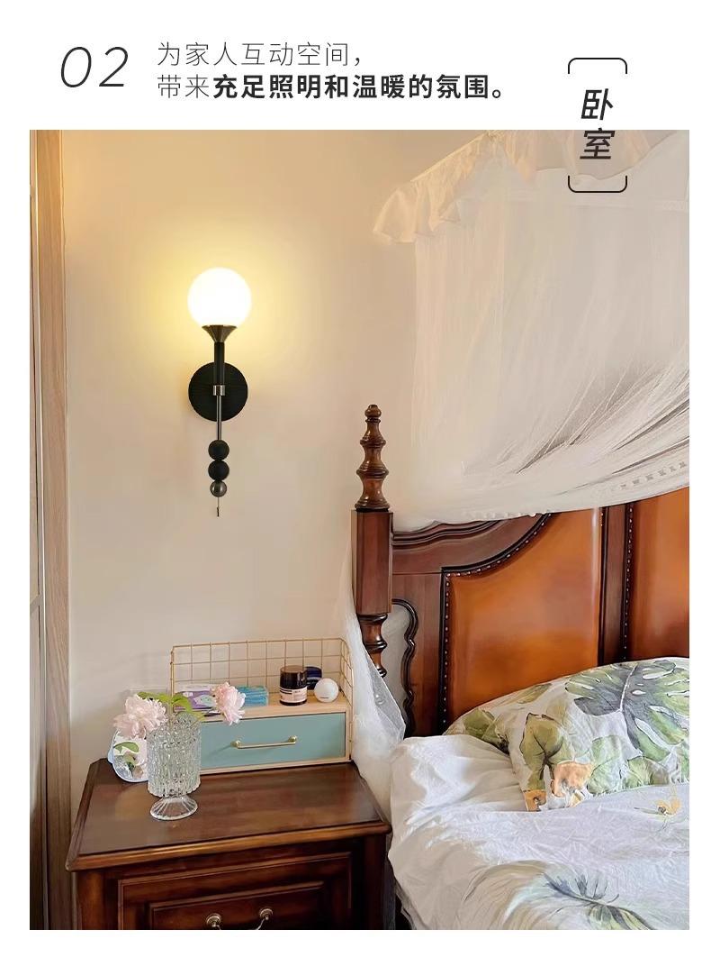 Lámpara de araña pequeña francesa antigua de estilo americano con interruptor de tracción de cable, lámpara de pared para dormitorio, lámpara de noche pequeña, lámparas de nogal