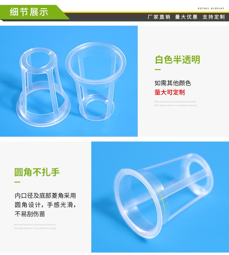 Ventas directas del fabricante, descuentos por grandes cantidades, moldes importados para moldeo por inyección, materiales PP nuevos, productos patentados, garantía de calidad, sin rebabas, grandes huecos, sin daño a las raíces de las plántulas, si tiene alguna pregunta, por favor contacte al servicio al cliente para recibir orientación.