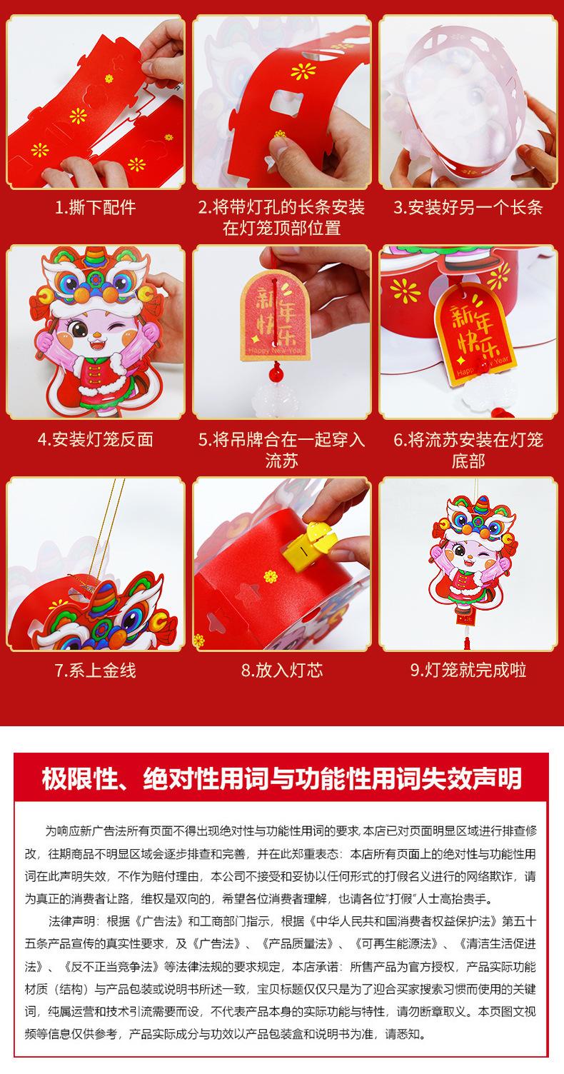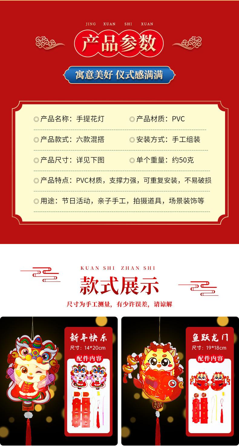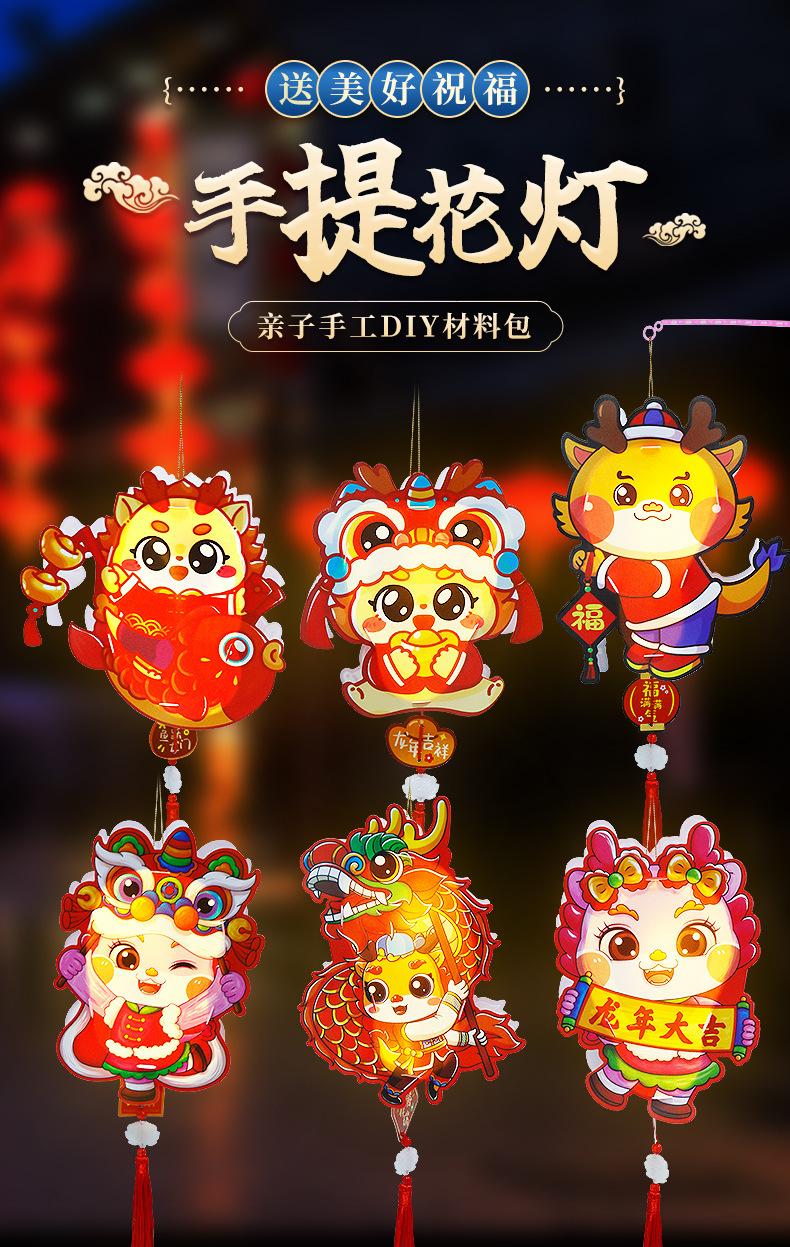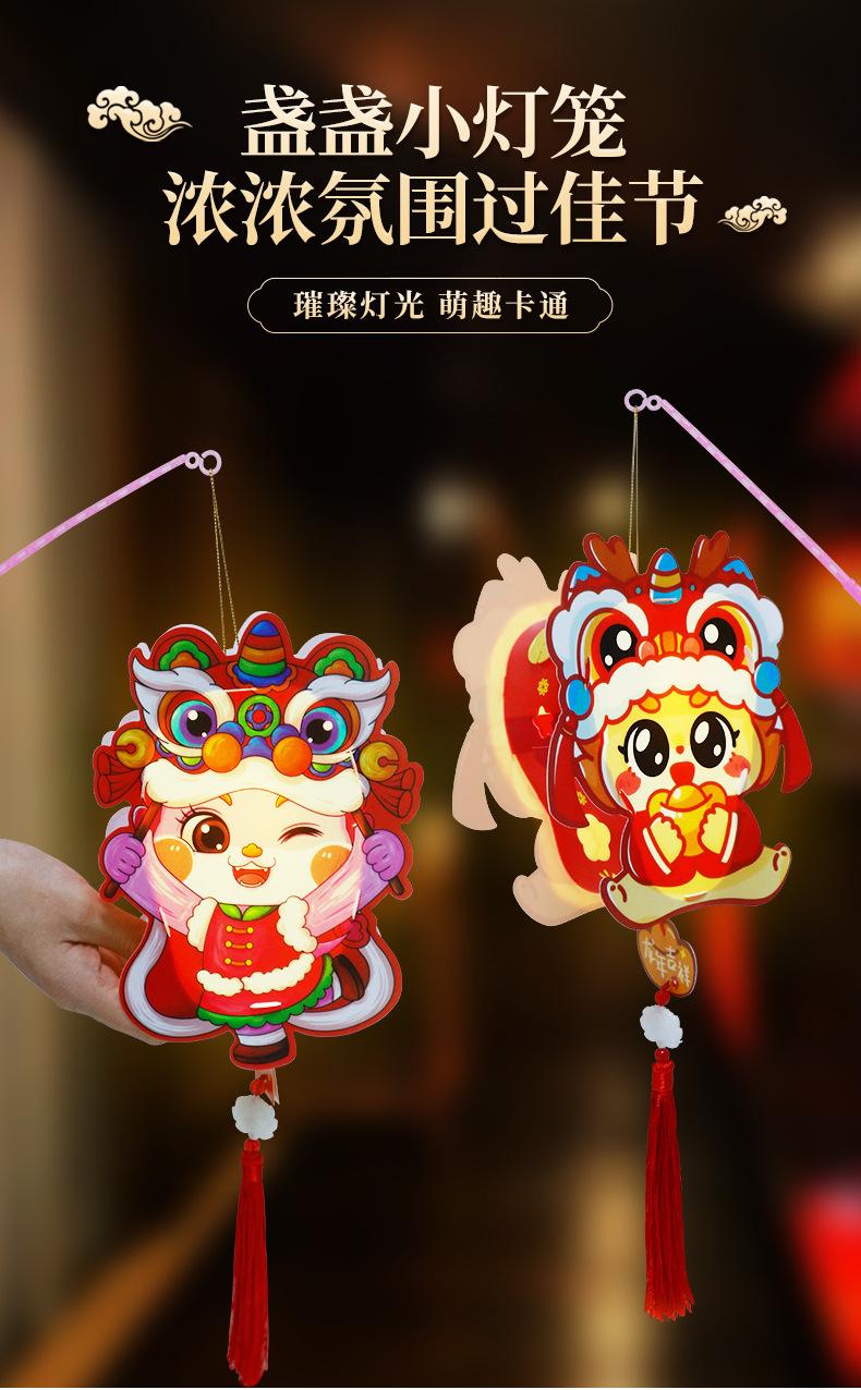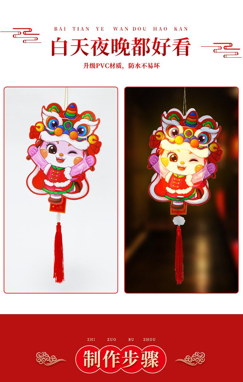 Linterna de Año Nuevo 2024 puesto de PVC hecho a mano diy luminoso portátil de dibujos animados linterna del Festival de Primavera niños linterna pequeña impermeable