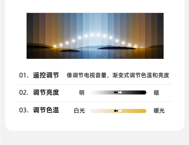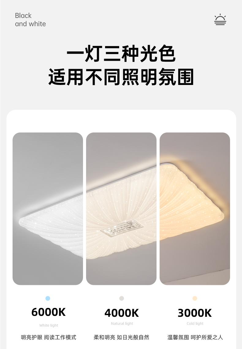 (3) Atenuación continua: atenuación y ajuste de color, puede ajustar la luz blanca, la luz amarilla, la luz blanca cálida, brillante y oscura, modo de luz nocturna, control remoto, con control remoto, el control remoto puede ajustar el brillo, el interruptor de pared puede ajustar la luz El interruptor de pared de color cambia la luz cuando se enciende y se apaga nuevamente.