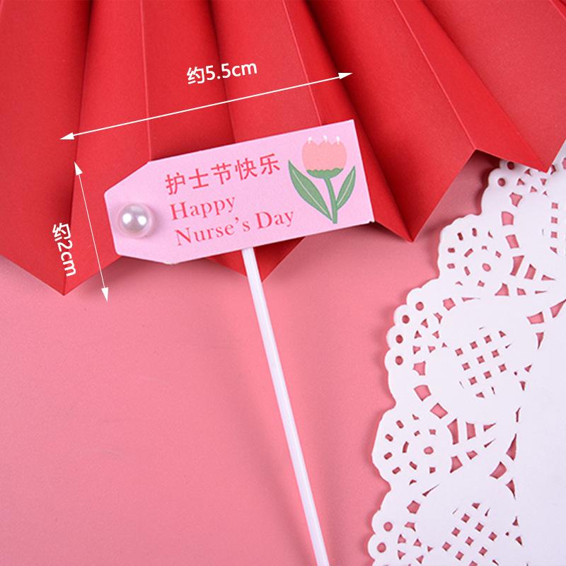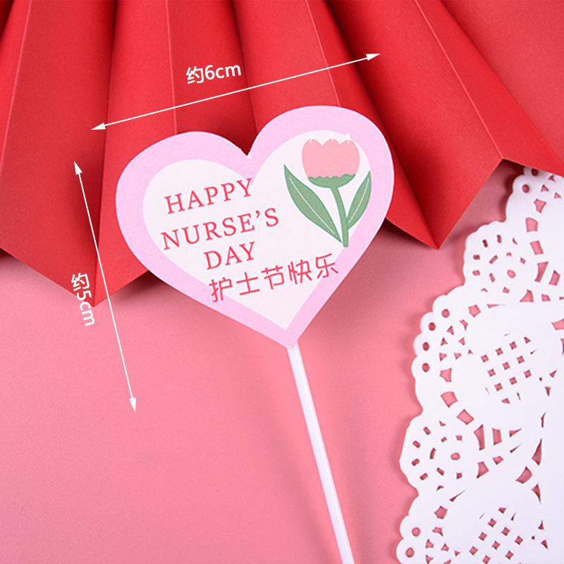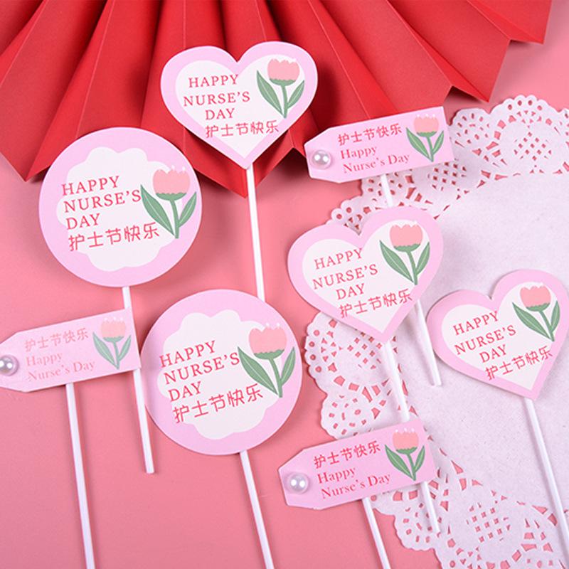 Festival de las Enfermeras Chinas e Inglesas Feliz Amor Tulipán Rosa Tarjeta de Decoración de Pastel Redondo 5.12 Festival del Ángel Blanco