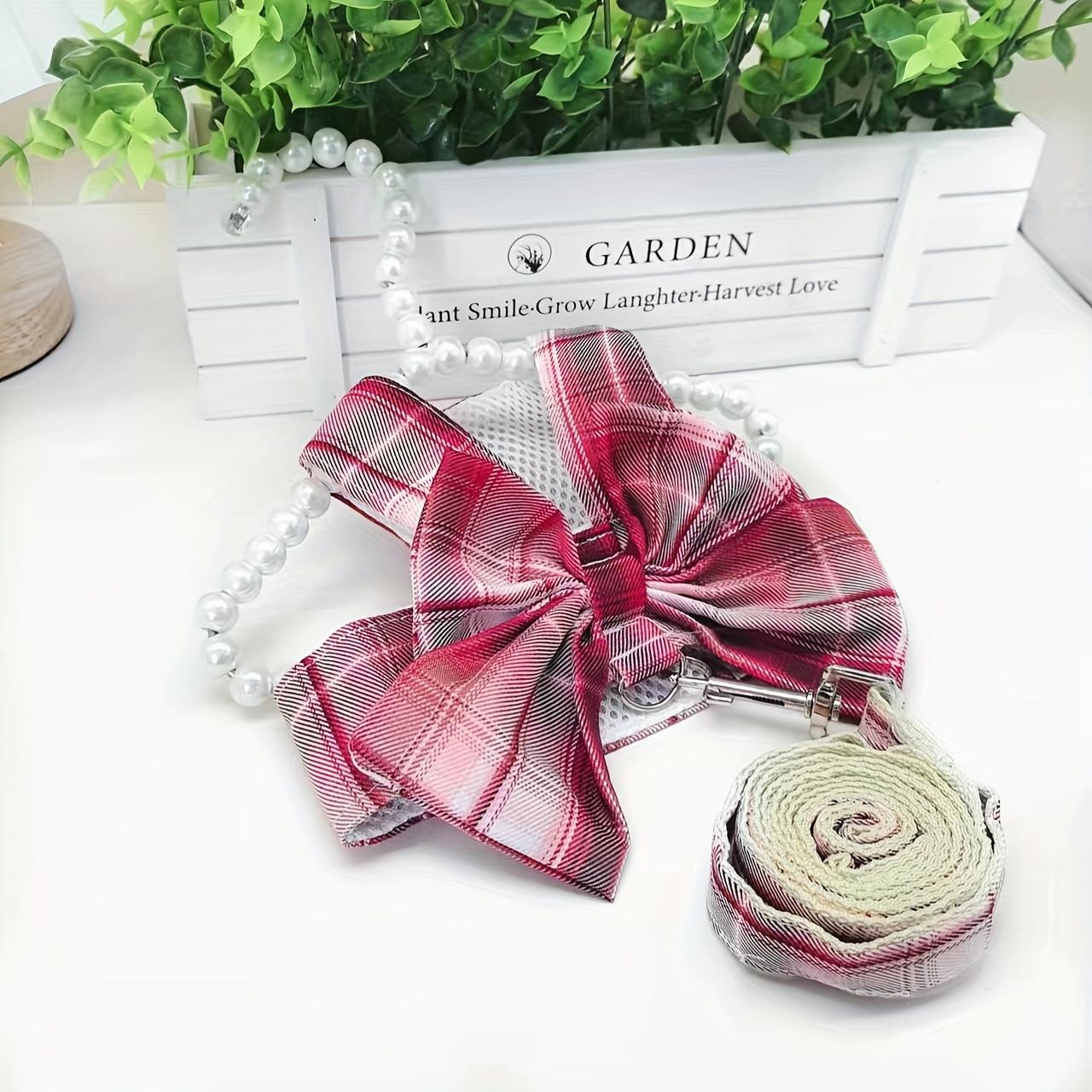 Chaleco clásico a cuadros para perro y gato, ropa de tracción, falda de osito de peluche para salir, correa para el pecho, cuerda para pasear al perro