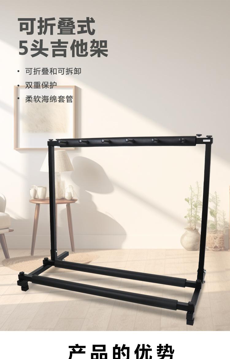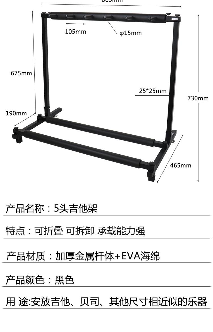 Estante de guitarra de piso de cinco filas, soporte de exhibición de guitarra de cinco grupos, soporte de exhibición de bajo, soporte combinado, estante de exhibición de guitarra
