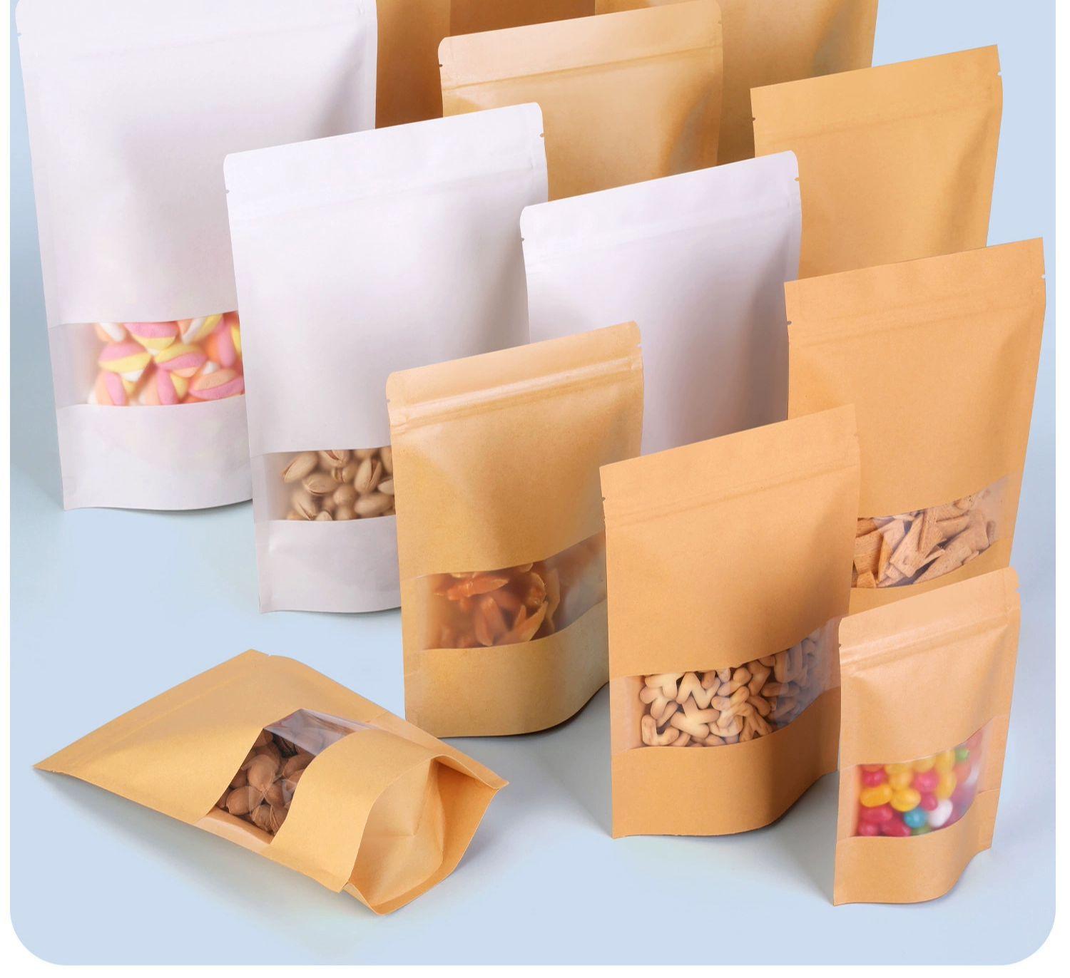 Bolsa Ziplock de Papel Kraft Marrón Autoportante para Alimentos Sellada Té Bolsa de Té Empaque Snacks Nueces Horneadas Venta al por Mayor Personalización