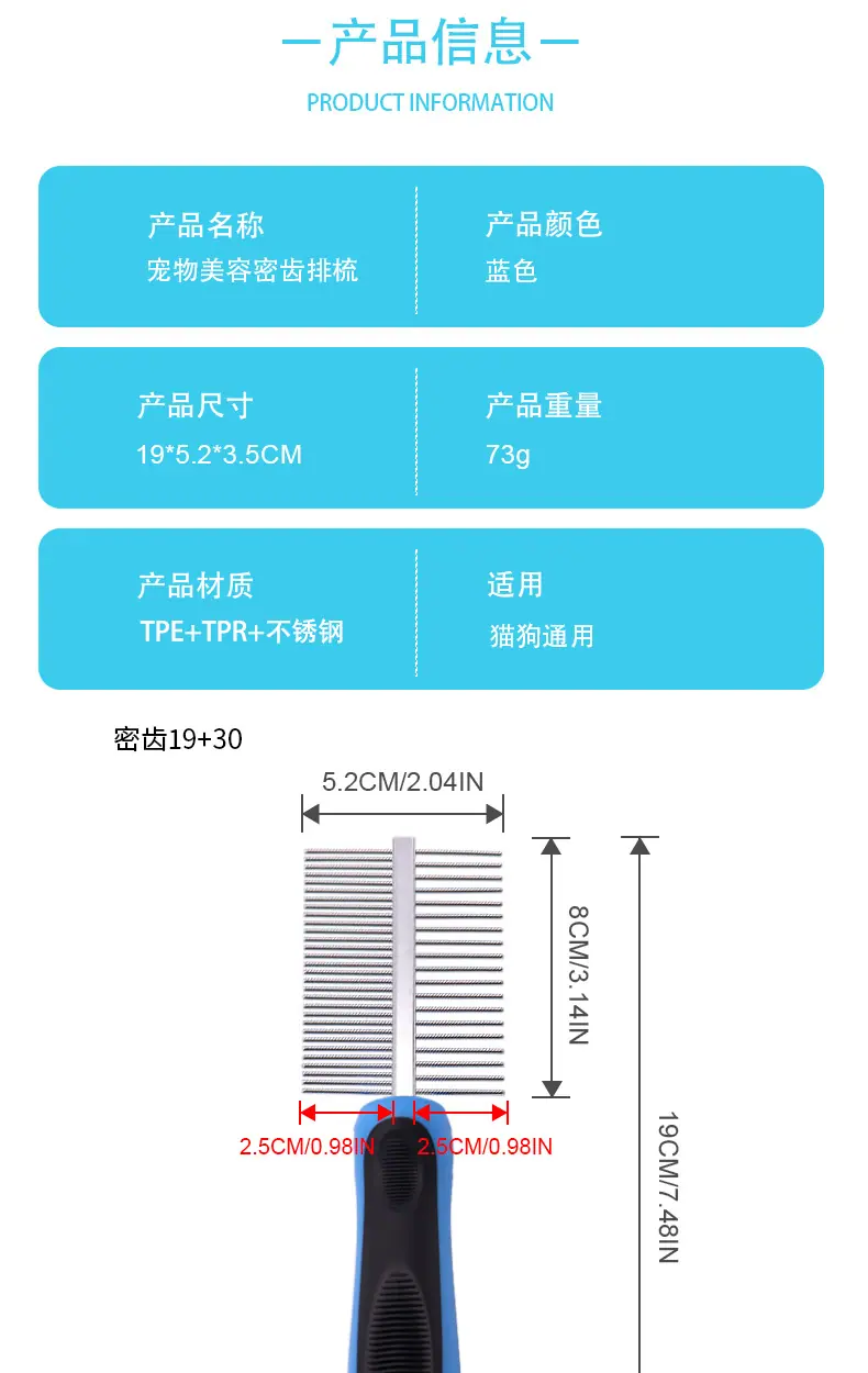 Peine para mascotas, peine para perros, peine de dientes, peine para hileras, peine para pelo de perro, artefacto, suministros para el cuidado del pelo de gato, peine para gatos